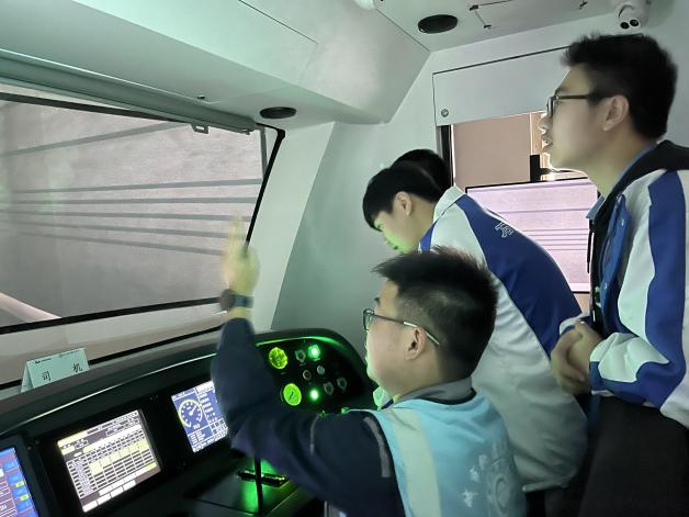 成都石室天府学校的同学们在研学指导老师和城市轨道交通学院研学志愿者的引领下通过真实场景沉浸式参观轨道交通常用设施设备,同时通过虚拟仿真司机驾驶平台真实感受轨道交通车辆司机岗位责任与职业化标准,充分了解城市轨道车辆安全运行的标准化作业全过程、体验了城市轨道交通运营全部署,真切体会行车调度、车站派班、站台服务、车辆驾驶和车辆检修等岗位工作内容及作业流程,对我国轨道交通行业有了一个基本认知。