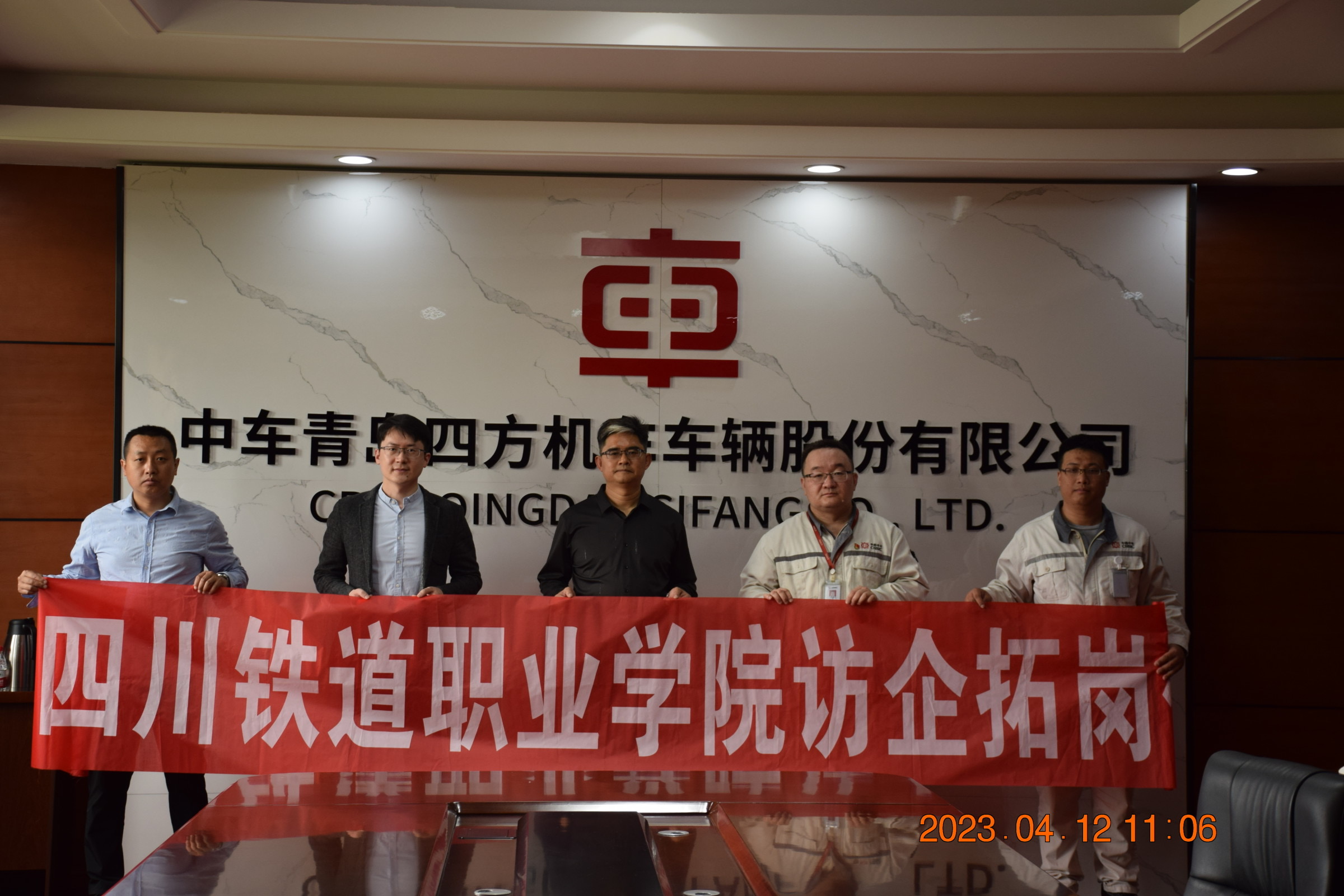 为了提高人才培养质量,推进校企合作,促进学生实习就业,服务区域经济发展。4月12日,应企业邀请,城市轨道交通学院党总支书记王文杰一行到成都中车四方轨道车辆股份有限公司进行调研交流,公司副总经理矫培海,综合管理部主任吴健,制造中心主任康小雪等领导参加校企合作座谈会。