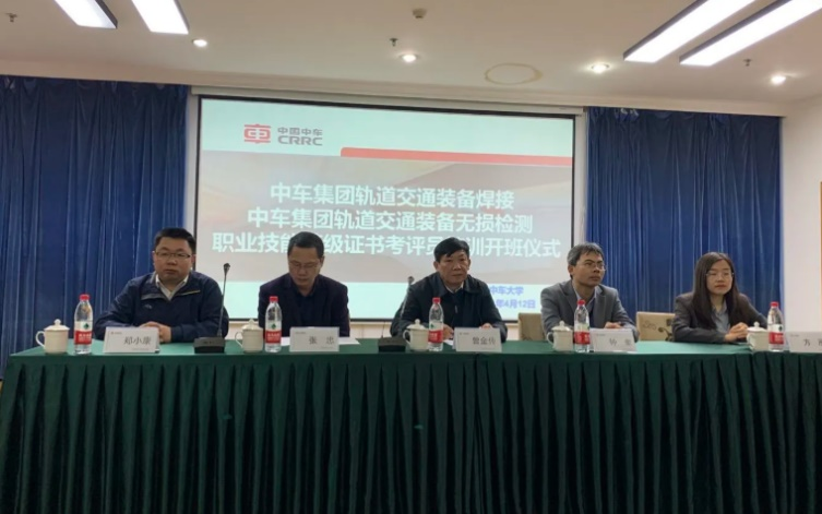 4月12号上午,中车集团轨道交通装备焊接、轨道装备无损检测及轨道交通装备电气设备装调职业技能等级证书考评员培训在常州举办。城轨车辆系何劲辉、钱靖前往参加了三个项目为期一周的考评员培训。开班仪式动员大会上,中车大学副校长曾金传出席会议,并向参加本次培训的专家、老师们表示热烈的欢迎。随后曾校长传达了教育部办公厅、国家发展改革委办公厅,对推进1+X证书制度试点工作的指导意见,以及1+X证书制度试点工作开展的重要性。