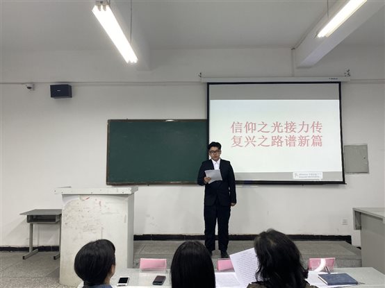 为引导青年大学生重温红色记忆、缅怀革命先辈,传承红色基因,激发爱国力行,展示青年大学生爱党爱国爱社会主义、向善向上的精神风貌,我系于5月10日晚7点1519教室举行“信仰之光接力传 复兴之路谱新篇”演讲比赛。辅导员方国春、余雅莉老师,以及公教部熊杰老师担任评委,共9名选手参赛。 演讲比赛过程中,参赛选手围绕革命先辈、开国将帅、 英雄模范、先进典型以及在百年党史历程中具有重大影响的历史事件,结合自身经历、学习感悟,以自身独特视角进行演讲:用生命炸碉堡的董存瑞、发展现代国防事业的聂荣臻元帅、草鞋书记杨善洲……选手演讲观点鲜明,史实准确,彰显精神,情节感人,深深打动在场观众。评委观众们也跟随参赛选手声情并茂的演讲共同重温先辈们殚精竭虑、筚路蓝缕的漫漫征途,进一步深入了解中国共产党党史、新中国史、改革开放史以及社会主义发展史。 赛后,评委老师对选手进行点评,在肯定同学们认真准备、台风稳健外也指出不足之处,希望同学们加强锤炼文字功底、理清演讲逻辑主线、升华“学史力行”主题。最后,经评委老师讨论,机车18A1谢捷和19T2郑沾雨同学将代表我系参加学院决赛。 此次“信仰之光接力传 复兴之路谱新篇”演讲比赛引导学生进一步深入学习“四史”,从党史中汲取前行力量,传承发扬党的优良传统,不忘初心、牢记使命,砥砺前行。