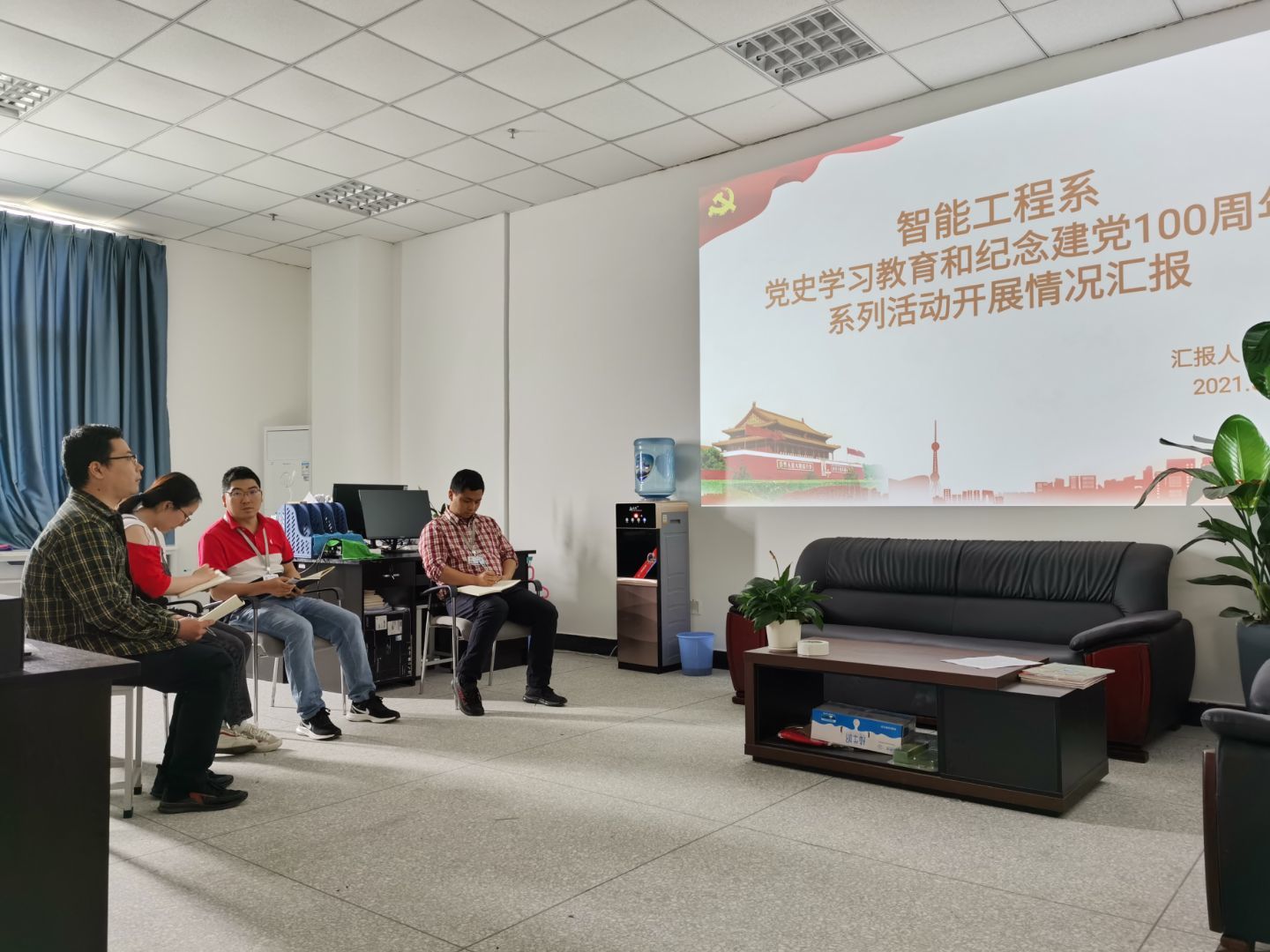 5月18日,智能工程全体教职工于5401办公室针对我系建党100周年庆祝活动推进情况以及党史学习教育情况进行了总结。