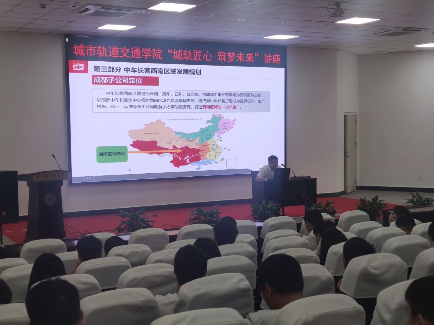 城市轨道交通学院于6月28日下午举办了“城轨匠心·筑梦未来”系列讲座第2期,邀请了成都中车长客轨道车辆有限公司技术质量部部长张云为学生分享“城市轨道车辆行业发展及人才需求”。