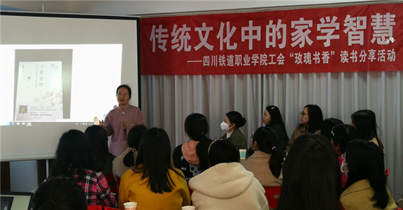 中午,“玫瑰书香”读书分享活动在教工之家活动室举行,安德校区38名女职工参加了本次活动。本次活动的主题是“传统文化中的家学智慧”,校工会常务副主席翁静首先分享了《中国传统文化中的八大智慧》《六大中国古代家庭教育方法》,然后向与会女职工郑重推荐《寸草春晖:传统文化典籍中的家学智慧》(蒙曼著),最后倡议成立beat365工会女职工读书会,为女职工搭建共同学习、交流的平台,带动女职工多读书、读好书、乐分享、同进步。机车车辆学院党总支书记颜静结合自身体验分享了读书会的通常做法和读书的收获。最后,校工会向参加本次活动的部分教师赠送了书籍。