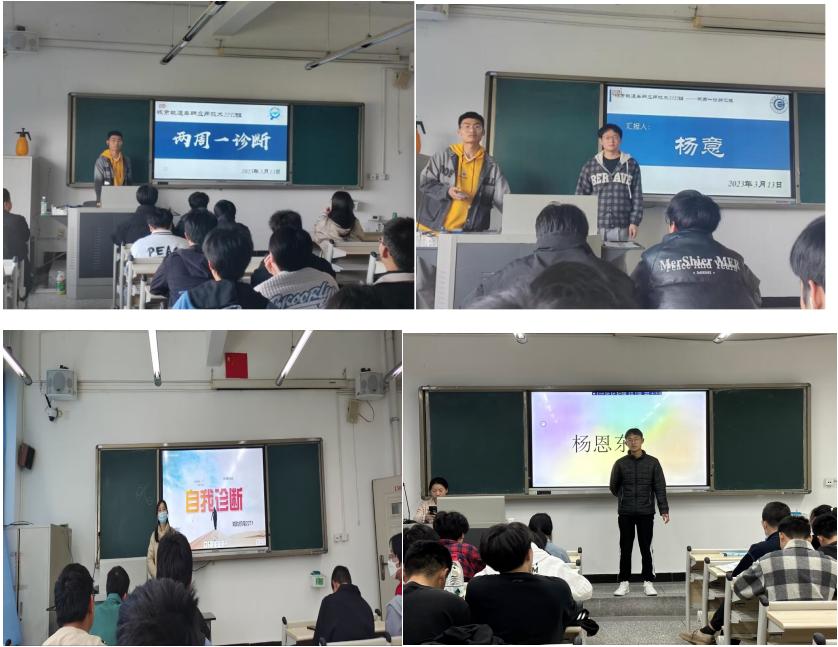 专(兼)职辅导员、教学干事利用主题班会、早晚自习带领同学们围绕目标设定、行为习惯、学习态度、学习动力、学习方法、社会实践、目标完成情况等方面进行自我诊断、自我反思。活动中,每位同学走上讲台,进行了自我诊断发言,全面查找自身存在问题,深刻剖析问题原因,提出改进措施。不少同学在台上还有脸红、出汗等紧张现象,通过交流发言,同学们找到了差距,明确了方向,表示将发奋学习,严格要求自己,朝着目标努力奋进。