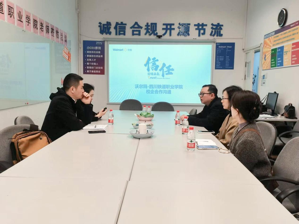 会上,沃尔玛卖场负责人对学校调研组的到来表示诚挚欢迎,并详细介绍了公司业务发展概况、企业文化等有关情况。他讲到,公司每年接纳实习生数百名,包括供应链、营销、财会等众多专业的实习生,拥有完整的实习员工培养和考评晋升机制,并与四川多所高校建立了良好合作关系。学院调研组就学院发展历程、专业设置与特色、应届毕业生数量等方面做了介绍。双方还围绕企业近三年实习生接纳量、实习生培养与关爱、薪资待遇与晋升通道、实习岗位与地区等深入交流,进一步加深了彼此的了解和互信。