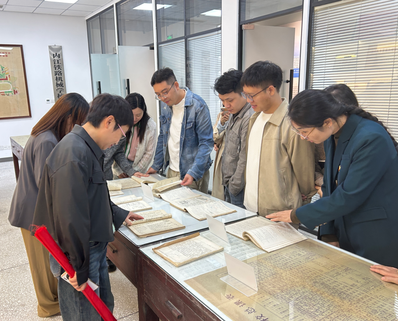 随后,党员教师们走进校史馆。杜林烨老师以 “根植铁路、服务行业” 为主线,通过真实的办学史料、老教师亲笔书写的教案手稿、校企合作纪实图片等珍贵展品,生动讲述了学校从艰辛初创到蓬勃发展的奋斗历程。大家在珍贵史料前驻足凝视,在铁道精神和学校历史中感悟初心,真切感受学校厚重的铁路文化底蕴与精神力量。