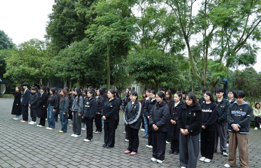 在抗战中流砥柱馆前,全体师生整齐列队,高唱国歌,肃立默哀,深切缅怀为国家独立、民族解放献出宝贵生命的革命英烈。在中国壮士群雕广场,师生们认真聆听抗战将士诗词,齐声诵读毛泽东同志的《沁园春・雪》,铿锵有力的诵读展现了新时代青年为中国式现代化挺膺担当的昂扬风貌。
