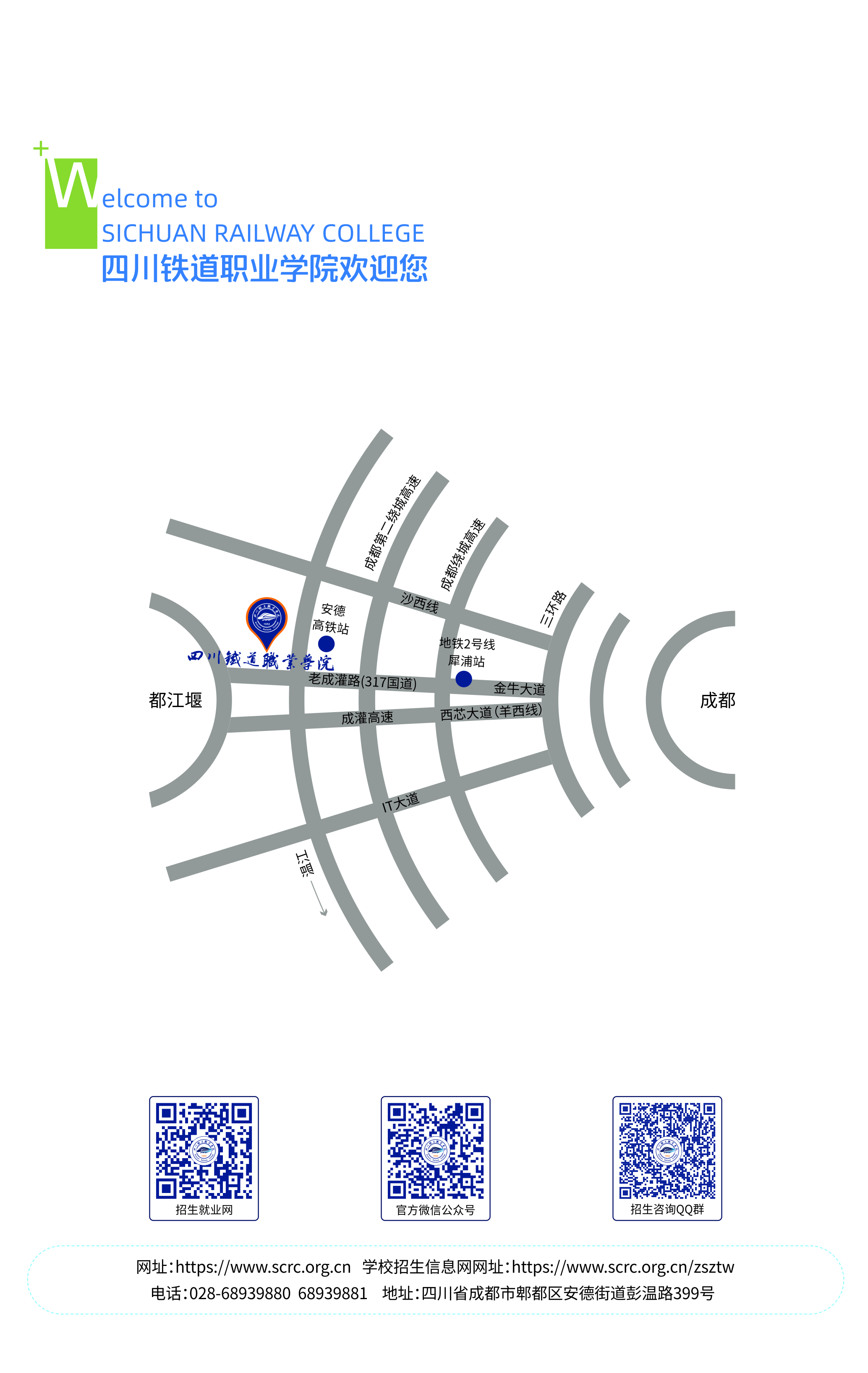 地址:成都市郫都区安德街道彭温路399号 邮政编码:611732 招生代码:5183 招生电话:028-68939881 028-68939880