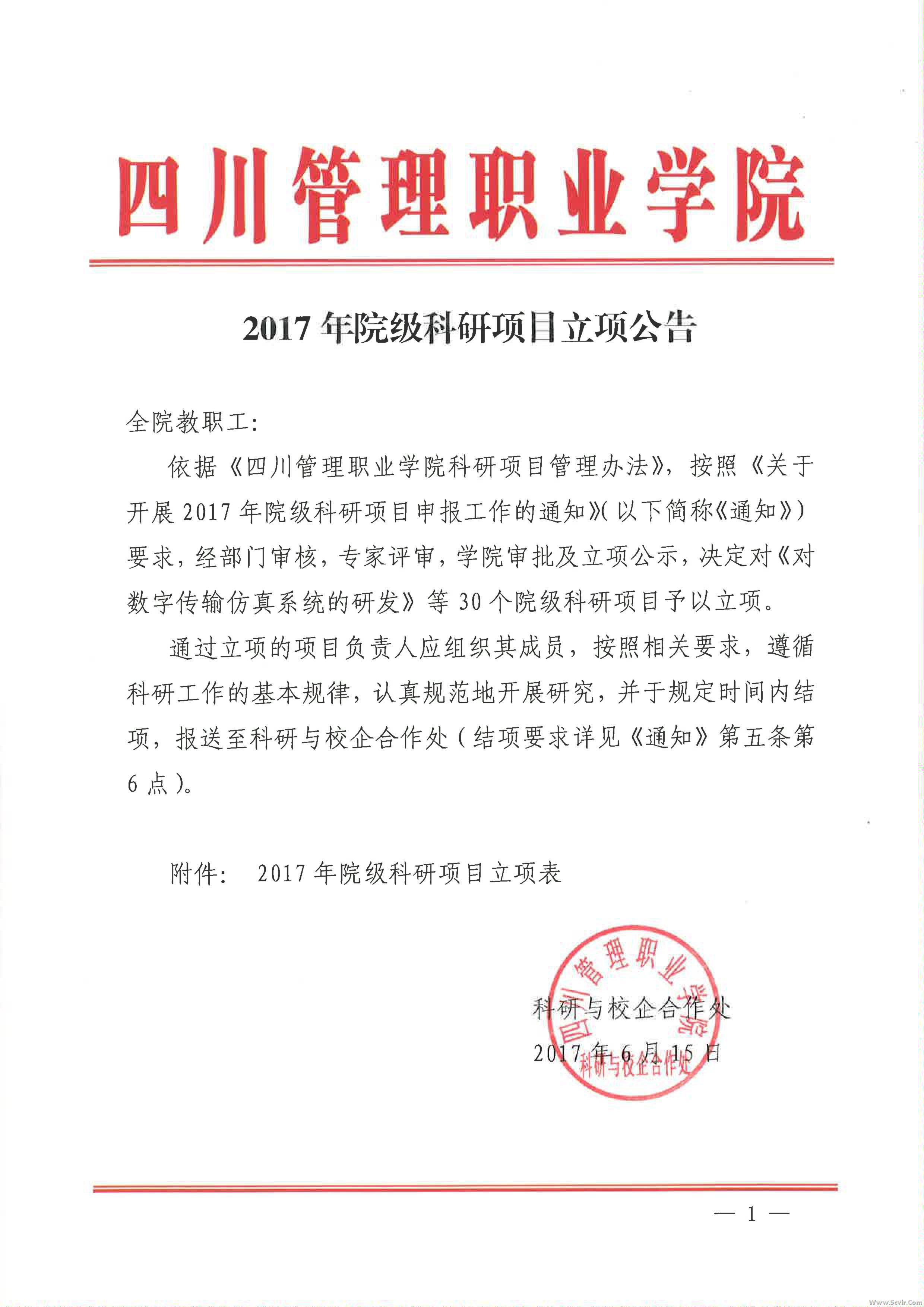 2017年院级科研项目立项公告