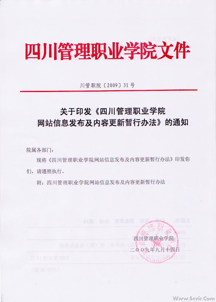 四川管理职业学院网站信息发布及内容更新暂行办法.doc
