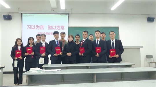 2020年11月10日18:30,青年马克思主义者学习研究社(以下简称“青马社”)“习以为苦 勤以为常”主题读书分享会暨2020-2021-1学期第一次全体大会在教学楼2419教室召开,青马社指导老师于明和、王婷婷、王彩霞、龙燕和全体青马社75名成员参与此次活动。