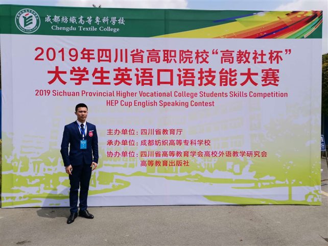 2019“高教社杯”大学生口语竞赛于4月4日在成都纺织高等专科学院落下帷幕。我院铁道交通运营管理专业庹文龙同学在本次竞赛中成绩突出,荣获非专业组一等奖。