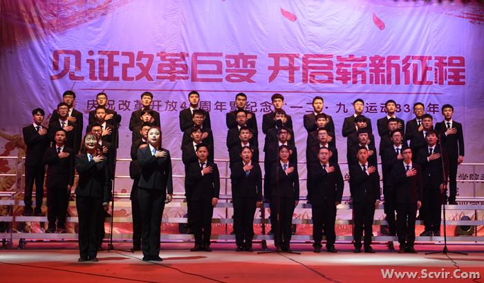 在改革开放40周年和“一二•九”运动83周年之际,我院隆重举办了“见证改革巨变 开启崭新征程”主题歌会和诗会。副院长易刚,学生处、院团委、各系党总支、团总支负责人和学生代表1200余人参加。