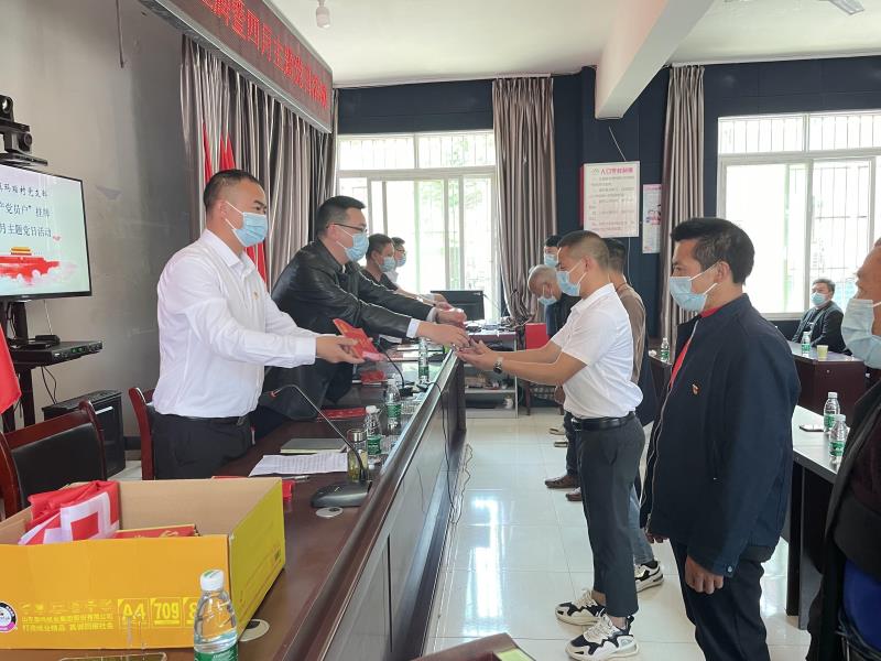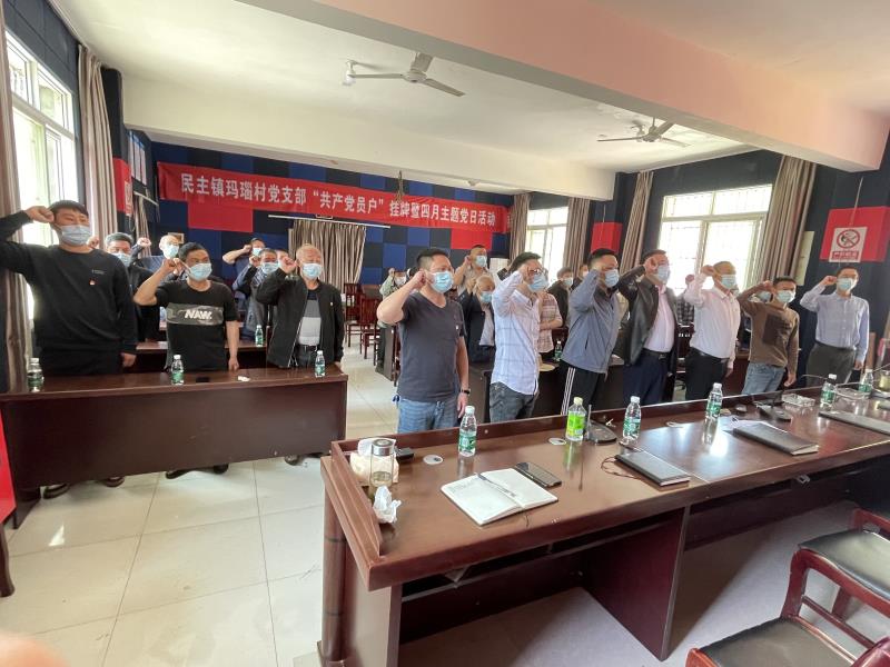 为展现基层党员干部的责任担当,主动亮身份、树形象、做表率,带头参与村级建设和事业发展,充分发挥共产党员的先锋模范作用,进一步推动学校乡村振兴定点帮扶工作。2022年4月21日下午,学校驻村工作队组织玛瑙村党支部全体党员和村组干部在马边县民主镇便民服务中心二楼会议室隆重开展“共产党员户”挂牌暨四月主题党日活动。