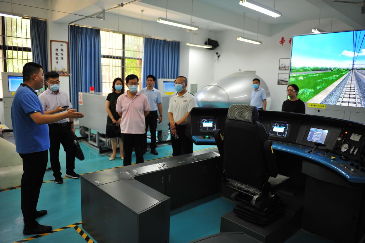 国家铁路局铁路机车车辆驾驶人员资格考试中心工程师李霓、成都铁路监督管理局副处长王永洪、中国铁路成都局集团公司职工培训部综合科科长杨茹、学校副校长黄勇、黄恩兴以及对外合作处、教务处、机车车辆学院负责人等参加调研活动。