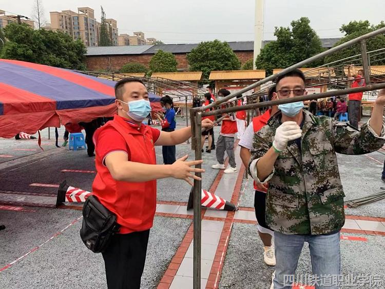 铁道工电学院教师党支部董浩协助社区搭建防雨棚 |