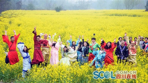 为协助青杠树村推进乡村振兴战略,充分发挥思政实践基地服务社区的功能,2018年3月10日,思政部龙燕老师带领思政实践小组16名志愿者学生,受邀参加三道堰青杠树村第五届油菜花节开幕式活动。 早上9:00,师生一行到达目的地,在主办方负责人的安排下,同学们身着汉服、展示汉文化,为游客提供咨询、引导服务和文明劝导。同学们的优质服务成为景区一道亮丽的风景,得到了游客的赞赏和主办方的高度认可。作为开幕式活动中的一大亮点,同学们还接受了四川日报、成都电视台等媒体的关注和采访。 活动当天,气温较低,阵阵春风略带一丝凉意。同学们在景区忙碌了整整一天,却没有任何抱怨。同学们表示:在此次实践活动中受益匪浅,既亲身感受到了“乡村振兴正当时”的新农村风貌,也为助推乡村发展振兴贡献了一份自己的绵薄之力。希望今后能有更多此类实践活动,为服务社区贡献自己更多的力量。