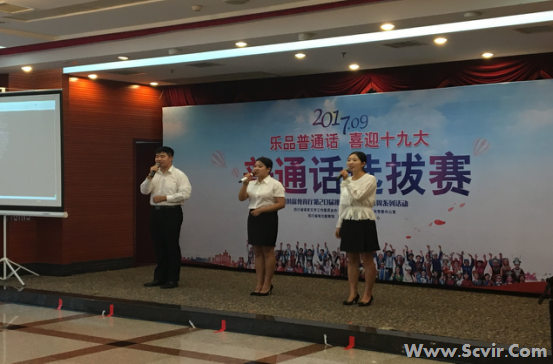 2017年9月13日成都市花园宾馆四川省教育厅举办了“乐品普通话喜迎十九大”语言表演大赛。我院李珂钰老师和学生代表杨洋、张俊颜以高质量的配乐诗朗诵《写给未来的你》得一等奖。
