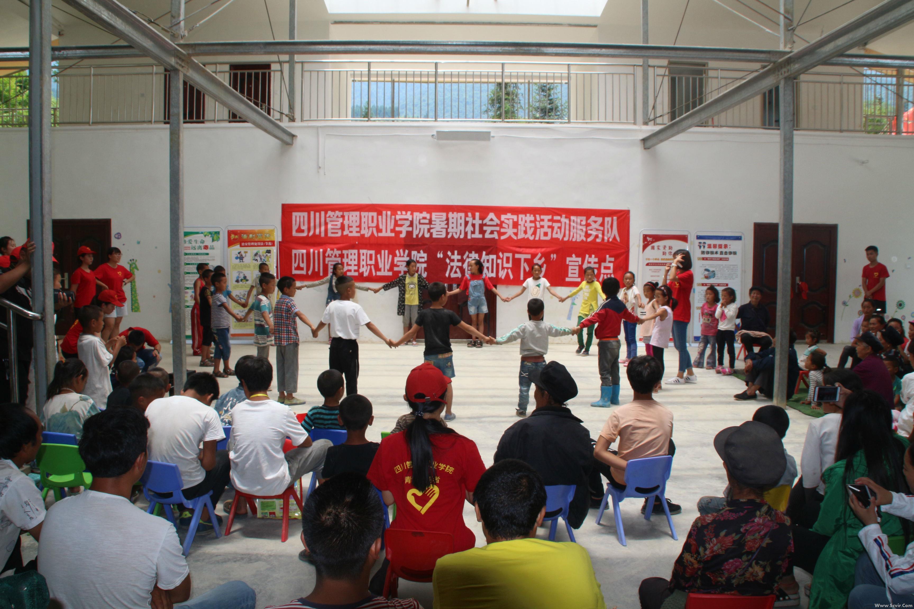 7月12日,18名师生来到雷波县汶水镇铜厂沟村开展“润物无声送法下乡行”活动,通过悬挂横幅、散发资料、文艺表演、有奖竞答等多种形式集中宣传普法。大力宣传了宪法、《食品安全法》《网络安全法》《未成年人保护法》《义务教育法》,以及禁毒防艾、防范电信诈骗、国家资助政策等相关知识。同学们精彩的演出受到村民们的热烈欢迎与好评,村民们也热情高涨,积极参与。在朱村长及驻村干部果基拉富的带领下,师生们参观了新村,进行了送法入户宣传,与村民亲切交流,宣传法律知识,动员、引导广大群众自觉尊法学法守法用法。