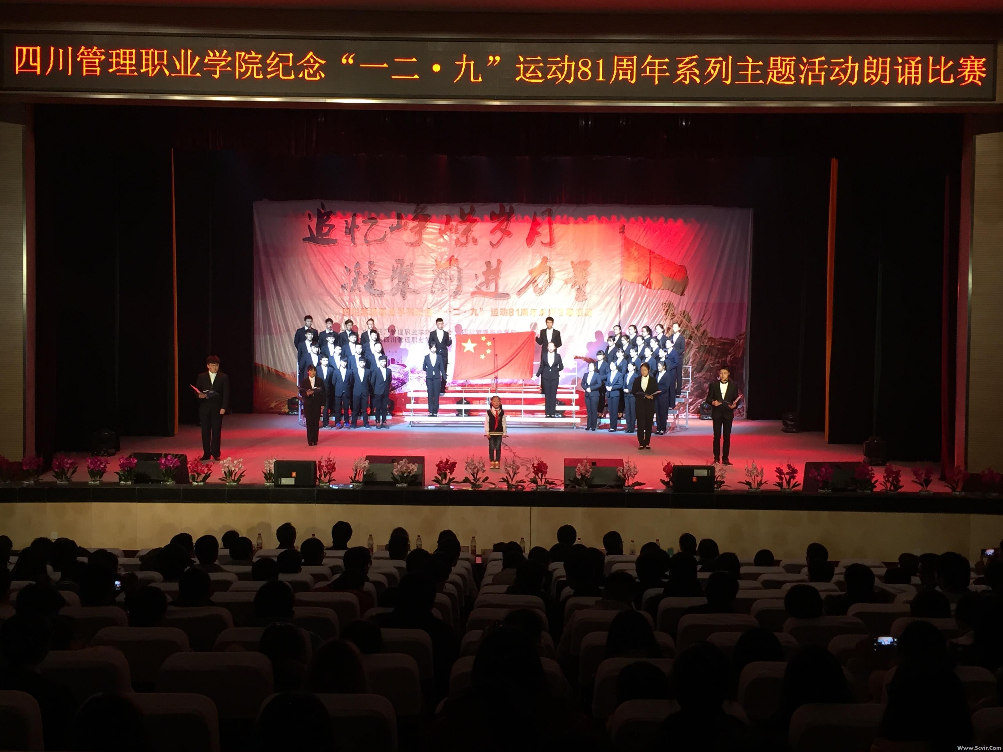 追忆峥嵘岁月 凝聚前进力量 ——我院开展纪念“一二·九”运动81周年系列活动 为继承“一二·九”运动光荣革命传统,弘扬爱国主义精神,我院组织开展了以“追忆峥嵘岁月,凝聚前进力量”为主题的纪念“一二·九”运动81周年系列活动。 12月5日晨,我院学生处在田径场组织举行了纪念“一二·九”运动81周年主题升旗仪式。护旗手迈着矫健的步伐,激昂的国歌回荡在耳畔,鲜艳的五国旗冉冉升起。飘扬的五星红旗下,机车13A3班陈俊杰同学发表了“传承一二·九,强我中国梦”主题演讲。他号召青年大学生把“一二·九”运动的爱国精神牢记于心,不忘国耻、铭记历史、永怀壮志,用实际行动来纪念先辈们的壮举。从历史中汲取感动,从感动中汲取前行的力量,为了富强、民主、文明、和谐这一共同的中国梦而努力奋斗。随后,院团委朱俐书记做了“追忆峥嵘岁月,凝聚前进力量”主题发言。她希望同学们传承历史,树立远大的理想和高尚的爱国情操,时刻为捍卫祖国的统一和民族的尊严而奋斗;勇担使命,培养勤于学习、敢于实践的创新精神,在实践检验中长才干、做贡献;创先争优,激发展示自我、争当榜样的热情,不断提升自我,展示良好形象。为将来的建功立业打好基础、做好准备,为实现中华民族的伟大复兴、国家的富强贡献自己的力量。 12月7日晚,我院在大礼堂举行纪念“一二·九”运动81周年合唱比赛。党委书记李青锋、副院长易刚、全体教职工和学生代表,共1200余人一同观赏了此次红歌盛典。 城轨车辆系代表队演唱的《就为打胜仗》、《请祖国检阅》拉开了大赛序幕。机车14A3班与动检16T1班合唱团带来的《游击队歌》,将情景剧融入其中,使全场听众仿佛身临其境,切身感受到中国抗战历史的艰辛与悲壮、辉煌与光荣;机车14T2班与机车14T3班合唱团演唱的《光荣与梦想》、《共筑中国梦》诉说着当代共青团员的青春梦想,传达出他们对祖国的美好祝愿;管理系代表队献上的《迎风飘扬的旗》,雄浑激昂,充满了对祖国美好未来的憧憬。 比赛过程中,团委官方微信、微博实时更新赛事资讯。在场师生积极参与转发和话题讨论,并通过投票通道,评选出了本场比赛的“最佳人气奖”。经过现场评分、计分,机车14T2班与机车14T3班合唱团荣获一等奖;机车14A1班与机车14A2班合唱团、供电13A2班与供电15T4班合唱团荣获二等奖;机车14A3班与动检16T1班合唱团、供电16T3班与供电14A1班合唱团、管理系合唱一团荣获三等奖。 本次红歌赛是一场集歌唱、舞蹈、朗诵、情景剧于一体的视听盛宴,更是一场入心入脑的红色教育活动,展现出了我院学子的青春风采,也表达了他们共筑中国梦,走向新辉煌的坚定信念。 12月8日晚,红色经典诗朗诵大赛在大礼堂隆重举行。各参赛队伍经过了一个多月的精心准备,在服装、编排、朗诵设计上,都各具风采。坚定的眼神,铿锵有力的声调,展现出了参赛选手们的骄傲与自信。情景式的表演,极具观赏性。良好的朗诵技巧,自然的情感流露,将现场观众带入了美妙的诗境中。 经过激烈角逐,机车14A3班的朗诵作品《历史的印记,崛起的呐喊》荣获一等奖,供电16T1班、供电16T2班联合演出的《从军行》、运管朗诵团演出的《中国梦》荣获二等奖,机车16T1班、供电15T2班、机车16T3班荣获三等奖。 这两场比赛的参赛队伍,是在各系精心组织,各班级广泛参与的基础上,层层选拔推荐,进入决赛的。此外,我院还同步举行了新媒体线上活动和主题团日活动。通过开展纪念“一二·九”运动81周年系列活动,重温革命岁月,铭记抗战历史,让青年学子接受爱国主义的心灵洗礼,培养他们的历史使命感和社会责任感,激励他们为实现中华民族的伟大复兴贡献自己的力量。
