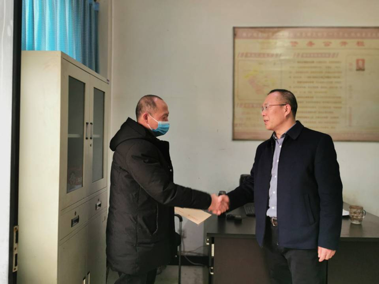 在走访慰问退休职工党员操江熬时,党委书记贺兆轩悉心询问他的健康状况和生活情况,代表学校党委向他致以新春祝福并鼓励他对未来生活充满信心。同时他充分肯定了离退休老同志为学校建设发展做出的贡献并致以衷心的感谢。