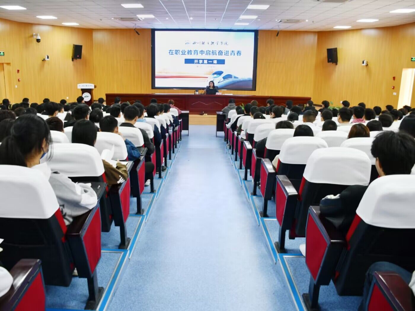 为深入贯彻习近平新时代中国特色社会主义思想,让党的二十大精神在青年学生中落地生根,3月6日下午在成都校区学术报告厅,校长赖芳以《在职业教育中起航奋进青春》为题,通过线上线下相融合的形式,为全体在校生讲授一堂内涵丰富、启示深远的“开学第一课”。