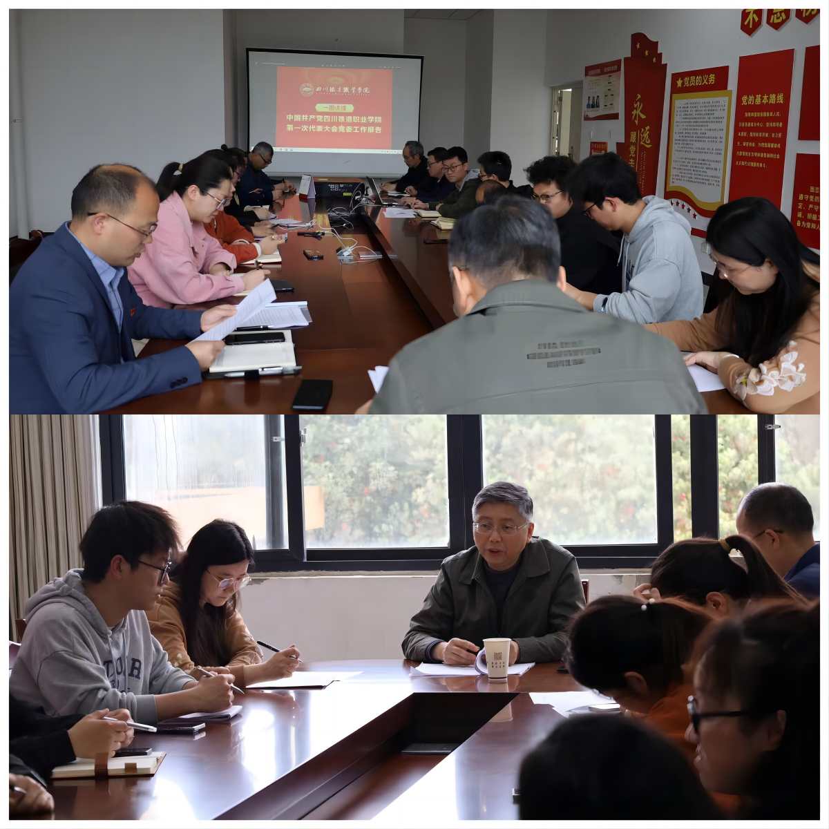 会上,吴斌副校长先讲党代会主题:高举习近平新时代中国特色社会主义思想伟大旗帜,深入学习贯彻党的二十大、省第十二次党代会精神,全面贯彻党的教育方针,落实立德树人根本任务,以中国式现代化全面推进学校高质量发展,自信自强、守正创新,团结奋进建设更加现代、更加开放、更加美丽,轨道交通特色鲜明的国内一流高职院校新征程。接着,深入回顾了过去五年的主要工作和70年办学成就,详细讲解“六个始终坚持”、学校事业发展面临的内外形势与困难问题、八项工程等内容。