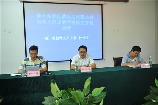 7月12日,省总工会党组成员、机关党委书记、省教科文卫工会主席杜长江、省教科文卫工会副调研员、权益部部长李多为应邀来我院对筹建工会相关工作进行指导和调研。 杜主席一行与学院党委书记李青锋、院长周立以及院党委副书记、纪委书记舒怀春等进行了座谈,就新形势下如何做好工会工作、如何发挥工会在教育引导教职工服务大局、服务发展等方面的作用进行了交流和探讨。 座谈结束后,杜长江主席对我院新当选的首届“双代会”代表和工会干部开展了培训。本次培训紧紧围绕“健全完善以教职工代表大会为基本形式的学校民主管理制度”这个主题,从学校民主管理的相关概念、教职工代表大会的特点、职工民主管理发展演进的历史、教职工代表大会与学校党委、行政和工会的关系、规范召开教职工代表大会的程序、教职工代表大会的职权、教职工代表的选举、条件、权利和义务、如何做好教代会提案征集处理工作等八个方面详细阐释了学校教职工代表大会制度的重大意义和深刻内涵,这对帮助我院教职工代表和工会干部提高业务水平,全面、系统地了解教代会知识,进一步明确肩负的责任和使命,更好地推进学校民主管理和民主监督,促进学校又好又快发展和构建和谐校园起到了积极作用。 培训结束后,杜长江主席一行还参观了beat365工会教工之家活动室。