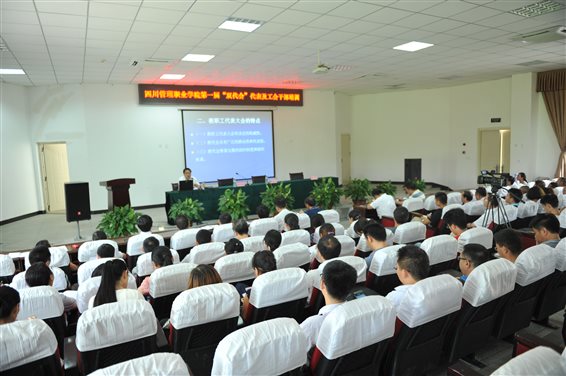 (图三:省教科文卫主席杜长江同志为我院首届“双代会”代表及工会干部讲课)
