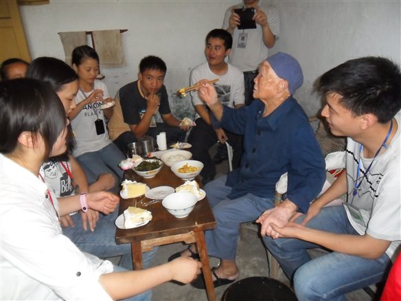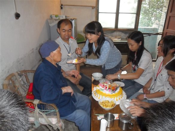 十五六岁时的你每天都在干什么?上学、玩游戏、谈恋爱还是浑浑噩噩不知春秋? 4年来,内江铁路机械学校的一群普通学生通过接力照顾一位九旬老人,将自己的青春年华变得意义非凡。 ——内江日报全媒体记者 曹群 实习生 龙朝阳 两次丧子:老人晚年哭瞎双眼 “哎呀,我的乖乖,你来了呀!”4月6日,铁机校学生科科长杨海涛和几名学生志愿者来到陈婆婆的家中,一听到有人进门,陈婆婆马上放下手上的东西,大声地喊道,“乖乖,你是哪个?” 志愿者口中的“陈婆婆”,是一位住在铁机校家属区的97岁老人,双目失明的她,不知道来的人是谁,只能靠询问来进行分辨。 身材微胖,面容和蔼,这是记者见到陈婆婆时的第一印象。 通过陈婆婆断断续续的回忆,记者了解到她坎坷的一生。陈婆婆本姓黄,叫黄淑清,丈夫姓陈,大家才都叫她陈婆婆。黄淑清才4岁时,父亲就去世了,家中兄弟姐妹多,只靠母亲一人艰难地支撑,生活过得很清苦。为减轻家里负担,黄淑清早早地就出来工作了。 当过丫鬟、做过搬运工,靠着自己的勤劳,黄淑清自强自立起来,也和其他人一样结了婚生了子。但是命途多舛,儿子英年早逝,夫妻俩经历了白发人送黑发人的痛楚后,再也没能生育。渴望拥有完整家庭的夫妻俩最终领养了一个儿子,一家人的生活才慢慢有了生机。看着儿子长大成人,结婚生子,黄淑清也在平静的生活中一天天老去。步入晚年的她尽管经历了丈夫去世,儿子离婚,但有儿孙陪在她身边,一切倒也波澜不惊。 然而,黄淑清平静的生活却在2012年被打乱了。当年1月29日,儿子因为一场车祸成为了植物人,刚过90岁的黄淑清担负起了照顾儿子的全部责任。 在儿子需要肩膀时,90岁的黄淑清用自己佝偻的身体又一次撑起了作为母亲的责任。而她的故事也在此时被更多的人所熟知,这其中就有铁机校的领导。 大家在被感动的同时,也在思考着如何帮助这位九旬老人。 2012年4月,铁机校的工作人员想出了一个办法,组织成立志愿者服务小组,每天轮流来帮黄淑清老人洗衣做饭,打扫卫生。 有了志愿者服务小组的帮助,黄淑清终于可以安心照顾儿子。遗憾的是,老人的付出依然未能留住儿子。 2014年,儿子离开了人世。再次经历白发人送黑发人的悲痛,黄淑清再难控制自己,整天以泪洗面,本来明亮的眼睛,也在泪水的冲刷中变得模糊,2015年,黄淑清的双眼彻底失明了。 儿子走了,孙子在外地工作,一年回来不了两次。双目失明的黄淑清,只能一个人呆在家中,在漆黑的世界回忆往昔,消磨时光。 自从2012年接触到黄淑清老人后,帮助她的志愿者便从未间断,特别是看到老人失去儿子后,大家有了一个共同的想法:每天轮流去陪伴老人。 “我们每天都有人去陈婆婆家里陪她聊天,天气好的时候还会带她出来散步,晒晒天阳。”杨海涛告诉记者,自从帮助老人的志愿者服务小组成立后,就陆续有同学参与进来。 因为每天都有人来家里,黄淑清给了志愿者们一把家里的钥匙,方便他们进出。所以一听到有人进门,黄淑清知道准是志愿者们,立马起身迎接。 在黄淑清家里,志愿者们轻车熟路地开始分工合作,有人打扫卫生,有人陪着聊天,还有人给老人揉腿,其乐融融的场面,让原本简陋的房间一下有了生气,充满欢声笑语。 轮流下厨:老人每天都能吃上热饭菜 双眼失明的黄淑清老人生活起居自理困难,除了自己摸索着能够做饭洗衣外,炒菜都成了奢望,更别说出门购物了。 “我以前爱去寺庙,现在眼睛不行了,也去不了了。”黄淑清说,她特别害怕孤独,之前去过老年公寓,但不适应那里的生活,不到一个月就自己跑回来了。 如今,害怕孤独的黄淑清老人,心中不那么害怕了。 每天早上,她摸索着吃完早饭,就在家静坐等待志愿者们前来。“陈婆婆眼睛不好,炒不了菜,每天中午和下午放学后,我们都会来陈婆婆家帮她做饭。”志愿者李宗耀告诉记者,这几年来,他们除了帮老人做家务、陪老人聊天散步外,每天放学吃了饭,他们还会来帮老人做菜,让老人每天都能吃上热乎乎的饭菜,而每天中午和下午一两个小时的陪伴则成为了老人最幸福的时光。 4年来的爱心接力,已将老人和志愿者们紧紧连在一起。 一天,志愿者们如往常一样来到老人家中,打开门后却不见老人的踪影。“我们当时吓坏了,第一反应就是陈婆婆走丢了。”李宗耀告诉记者,没找到老人,几名志愿者立即报告给了老师,随后发动身边所有的同学,在学校附近寻找,都不见老人的踪影。最后才知道是老人在外务工的孙儿回来了,带着老人出去散步了。 “当时,我们急坏了,差一点就报了警。”李宗耀说,长时间的陪伴,让他们和黄淑清已经成为了互相牵挂的一家人。 丁彧在学校成绩很好,经常是班里的第一名,课余时间,除了学习就是去黄淑清老人家帮忙,老人也记住了这个善良的孩子。 丁彧前段时间得了鼻窦炎。聊天中,老人得知了情况,之后天天催着丁彧去医院看看。丁彧说:“现在治疗了回来,又每天叫我休息,让我加衣服,我喜欢跳街舞,因为这个事情,陈婆婆都不准我跳了。” 志愿者们的好,老人记在心里,她也以自己的方式在表达对孩子们的喜爱和心中的那份感激。 “每次来,陈婆婆都要撵我们走。”丁彧打趣道,一直以来,他们都没有因为老人的事迟到过。去年大年初一,丁彧想到老人没人陪伴,舍弃了陪自己家人的时间,来到学校和老人一起过年。 “我来时,家里只有陈婆婆一个