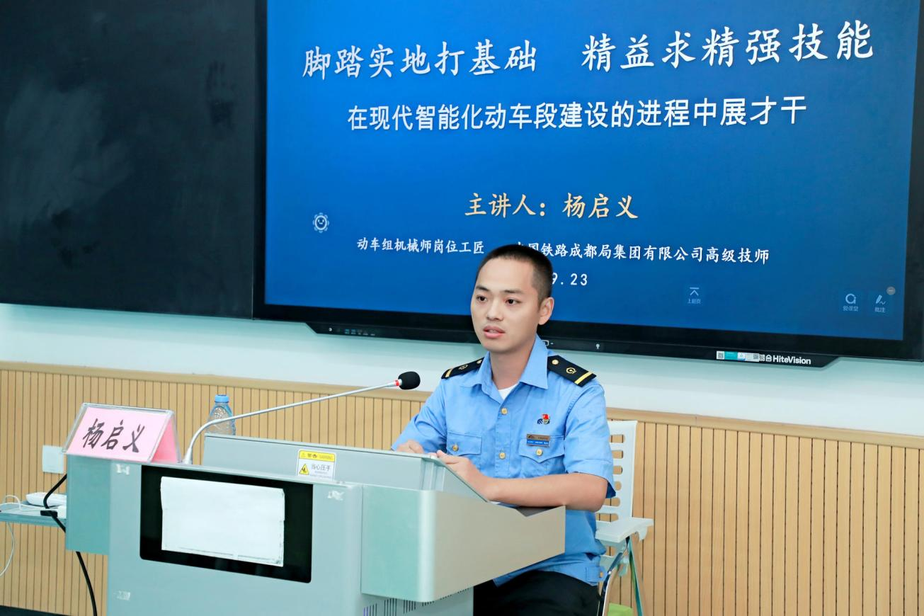 下午,“成都工匠”技术赋能展演活动在各分会场举行,王荣、杨启义、袁剑菲、邹景军4位“成都工匠”走进校园作交流分享,企业一线工匠、职业学校教师“碰头”,匠人匠心,青春筑梦,点亮职教学子的“大国工匠”梦。