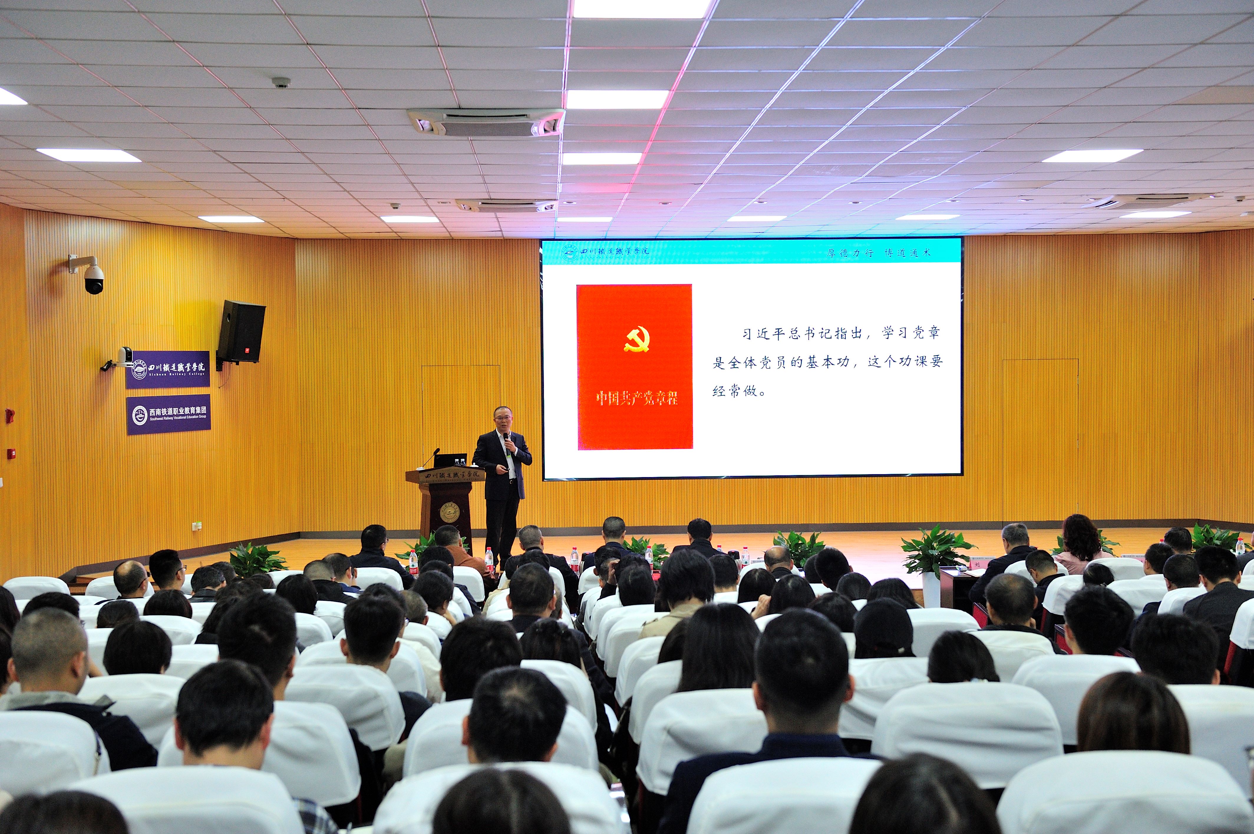 10月19日,学校党委书记贺兆轩为学校全体党员、副科级以上干部、马克思主义学院和公共教学部全体人员、青年马克思主义者学习研究社代表、民主党派代表、离退休党员代表、学生代表讲授专题党课。主题教育省委第十二巡回督导组组长刘青和组员参加党课。
