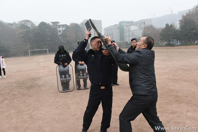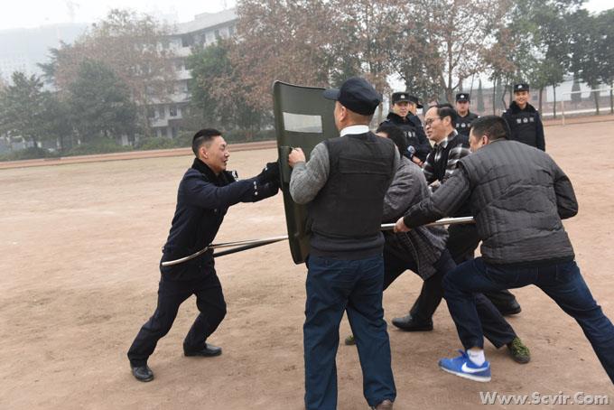 1月6日上午10时,我院内江校区反恐防暴应急队技能培训在学校运动场举行,校区安全保卫科等有关人员共27人参加了培训。培训内容主要包括两个方面:一是反恐防暴专业知识;二是反恐防暴技能。由内江市经开区公安分局巡警大队邓涛副大队长主讲。