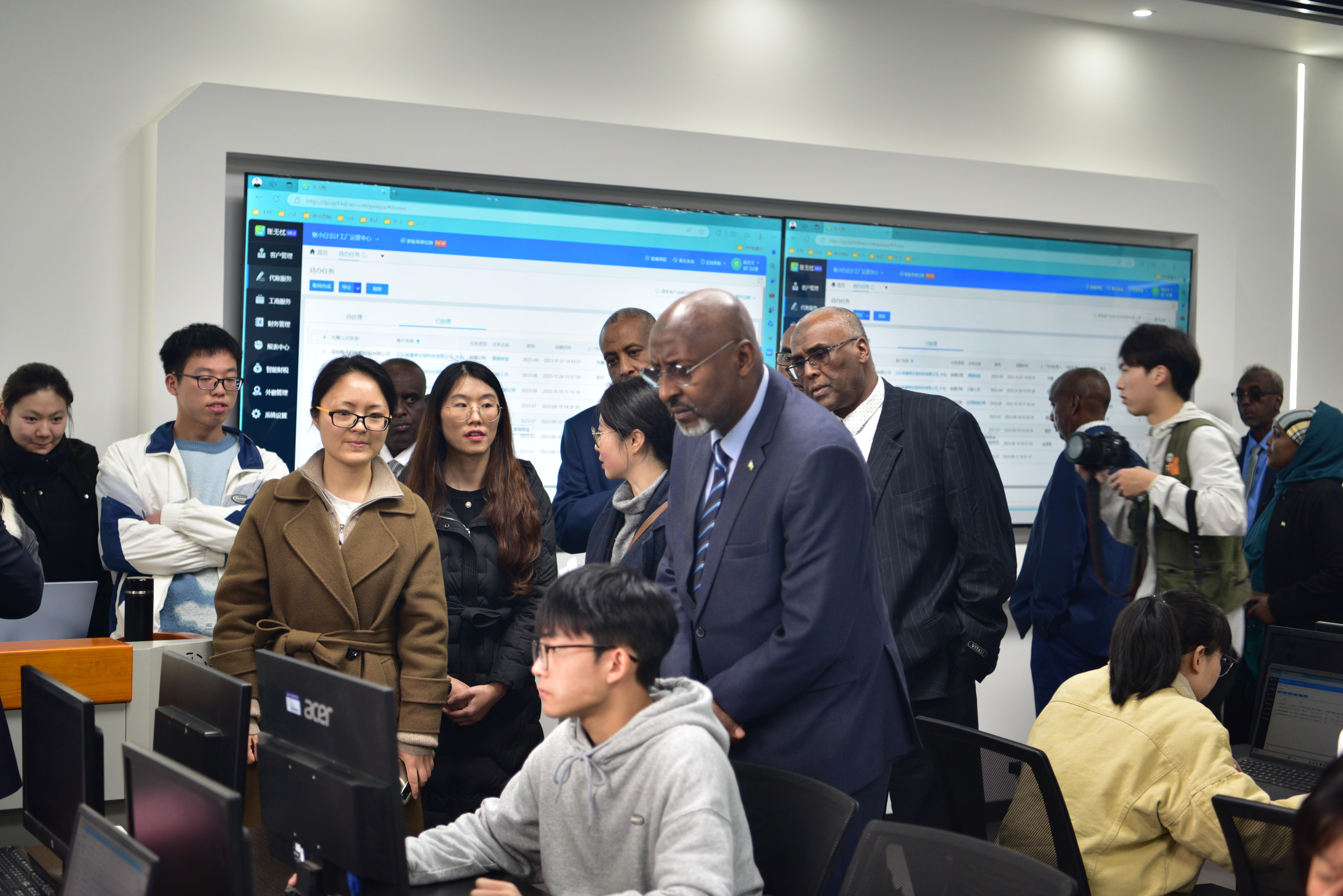 穆斯塔法部长一行首先参观了学校铁道综合实训基地、城市轨道交通综合中心、金蝶数智财经产业学院、复兴号模拟驾驶实训室等场所,他们对学校真实的实训场景、高端的虚拟与仿真相结合的实训设备、完备的实操装备给予了高度评价。