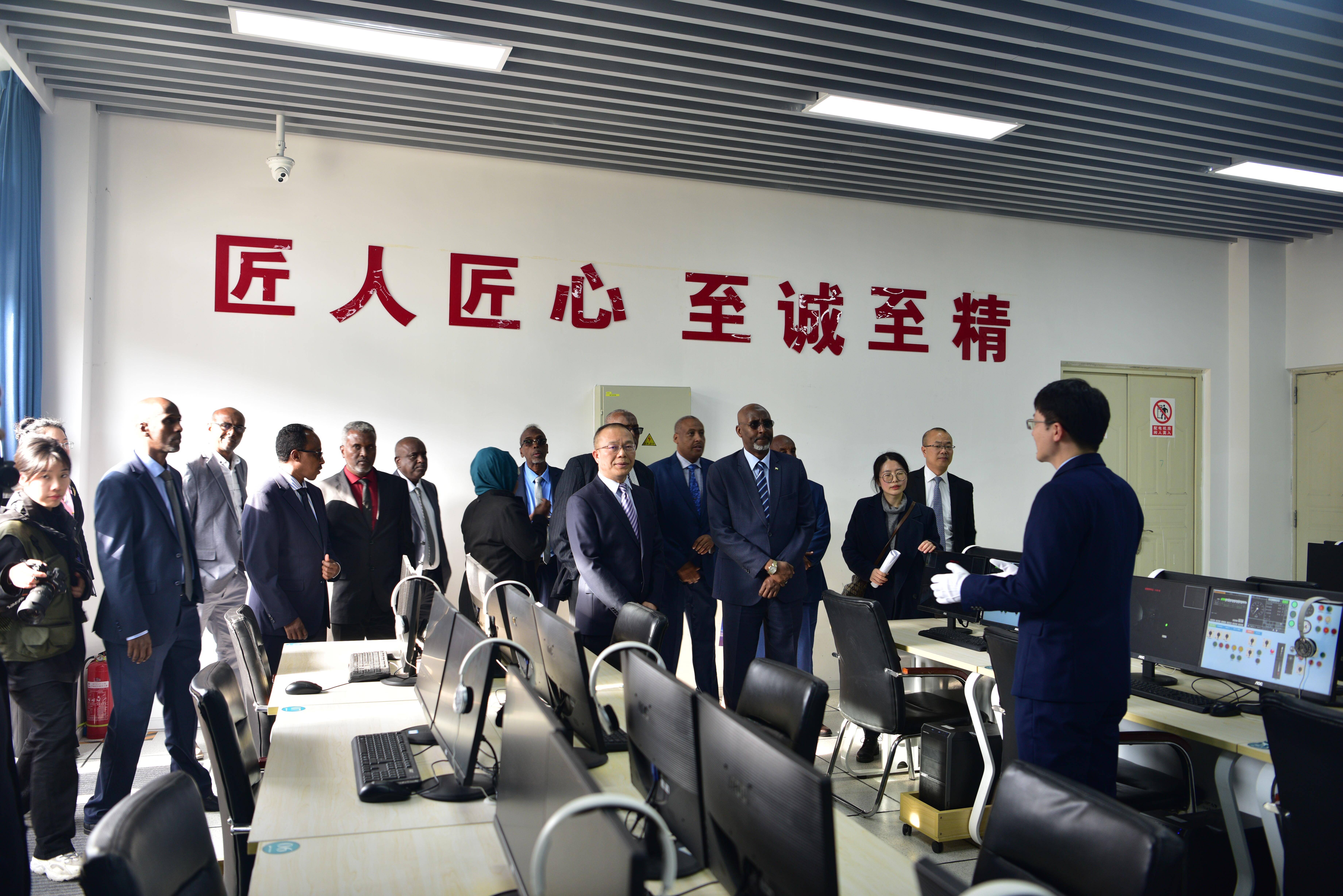 12月14日,吉布提国民教育与职业培训部部长穆斯塔法·穆罕默德·迈哈穆德、总督学迈哈迪·奥马尔·法拉、技术顾问罗恩·赛义德·哈吉·伊斯梅尔、吉布提工商学校校长阿布迪·伽玛·益盖等一行十一人应邀来beat365参观交流。学院党委书记贺兆轩、校长赖芳等学校领导接待来访,相关部门负责同志陪同。
