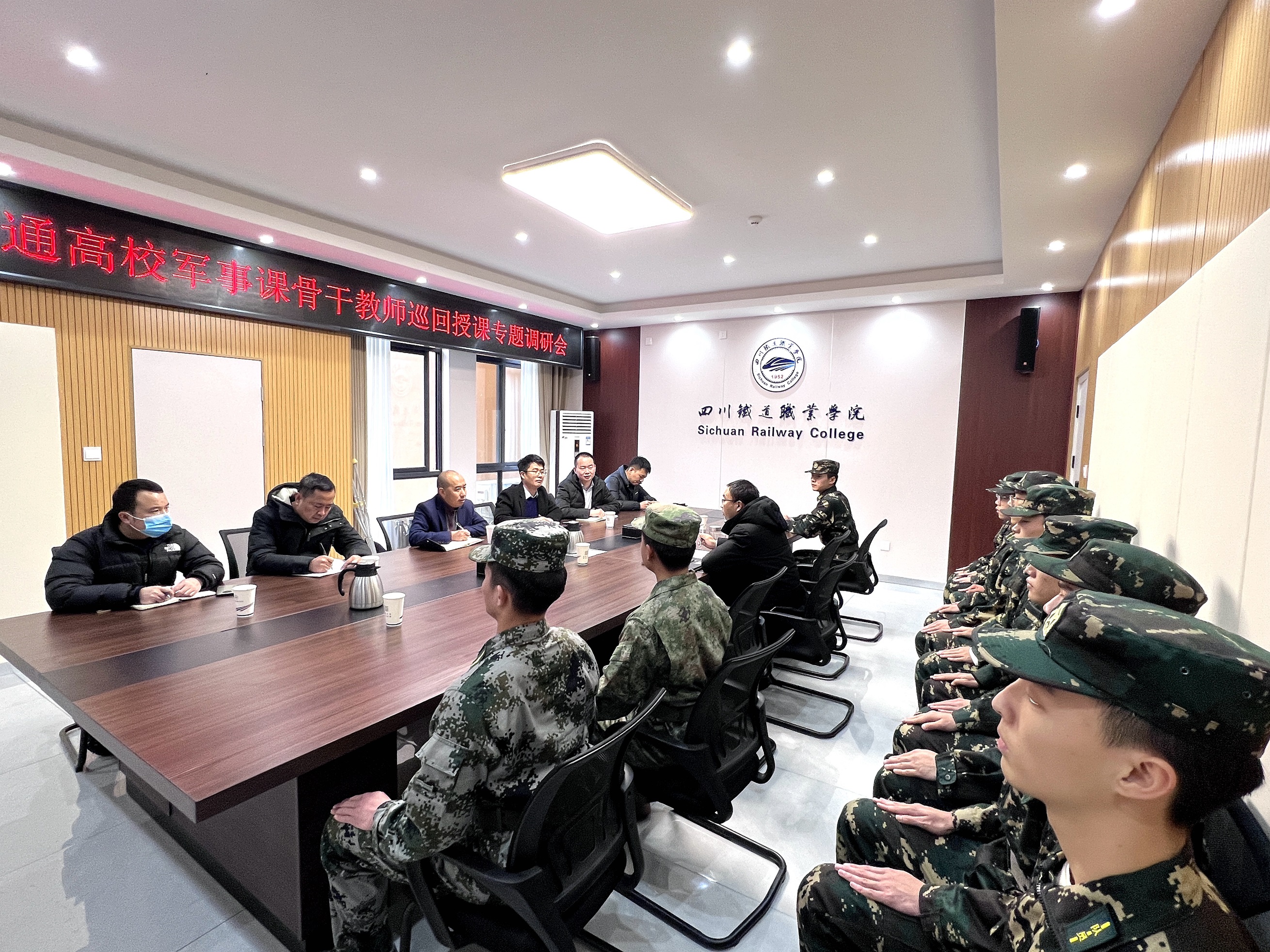 报告会后,陈家勇与学生工作部、安全保卫处有关负责同志,军事课专职教师、辅导员和学生代表进行专题座谈调研,详细了解了学校国防教育开展情况、军事技能与军事理论课授课情况等内容,并与在场师生深入探讨“军人气质”的内涵与培养工作,对学校国防教育有关做法给予了高度肯定。