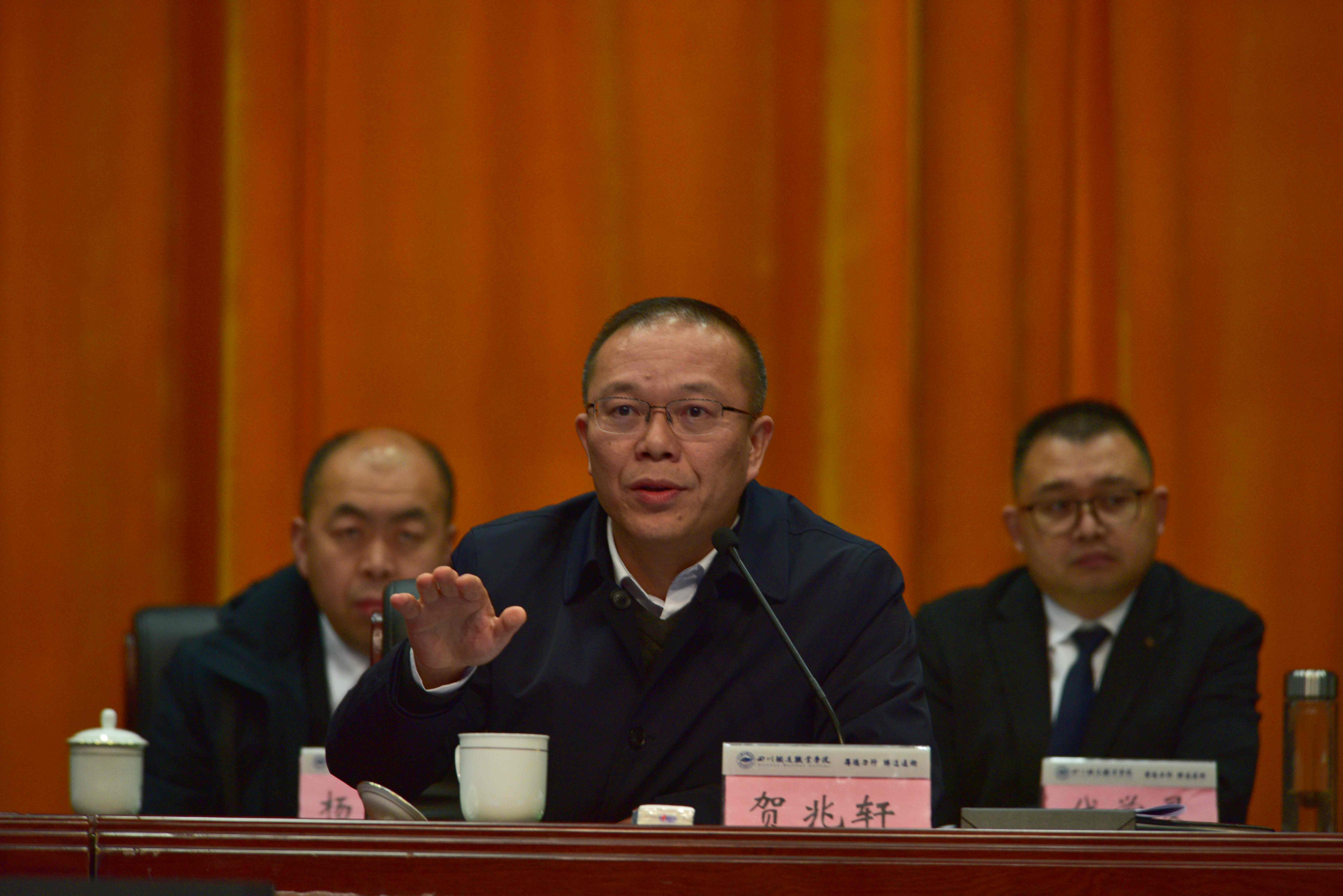 贺兆轩强调,要始终把坚持高质量发展作为新时代学校工作的硬道理,寻脉学校办学与高质量发展、新质生产力之间的关系,紧紧抓住技术创新、管理机制创新、人才培养模式和组织方式创新,深化产教融合、校企合作,密切关注中央到省级层面围绕发展新质生产力的新要求、新部署,从思想上深刻认识高质量发展丰富内涵、核心要义,从实践上精准把握新质生产力的工作要求,完整、准确、全面贯彻新发展理念,主动识变应变求变,主动服务新质生产力。要准确把握职业教育“时”与“势”,深刻认识新型工业化、产业转型发展对职业教育在人才培养、科技创新等方面带来的革命性变化,以及职业教育迎来的重大发展机遇。学校要与时代同频共振,抢抓职教发展机遇,推动学校高质量发展。