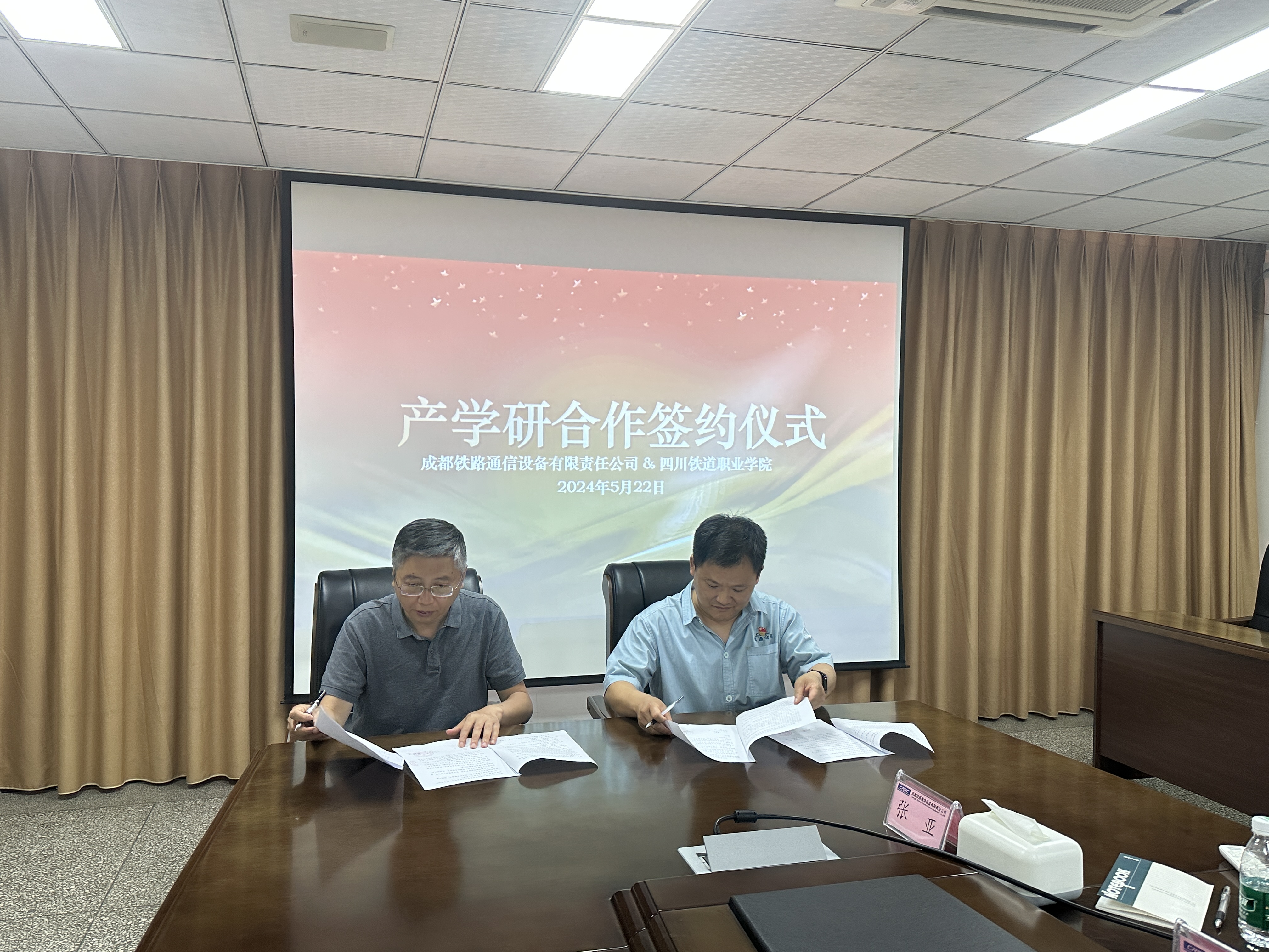 5月22日,学校与成都铁路通信设备有限责任公司在成都铁路通信设备有限责任公司会议室举行产学研合作签约仪式。学校副校长吴斌、电信工程学院副院长漆玉强、成都铁路通信设备有限公司副总经理丁华伟、安全总监游传国、技术总监王爱蓉、技术负责人唐曙光等出席了本次活动。 签约仪式上,双方秉着“优势互补、资源共享、互利共赢、共同发展”的原则,进行了深入交流。丁华伟对吴斌一行的到来表示热烈的欢迎,唐曙光作为发言代表详细介绍了公司的发展历史、产品与服务范围、应用业绩及发展理念,提到产学研合作对于公司技术创新和产品升级的重要推动作用。公司期待与学校的合作能够为公司注入新的发展势能,共同推动行业产业的繁荣发展。