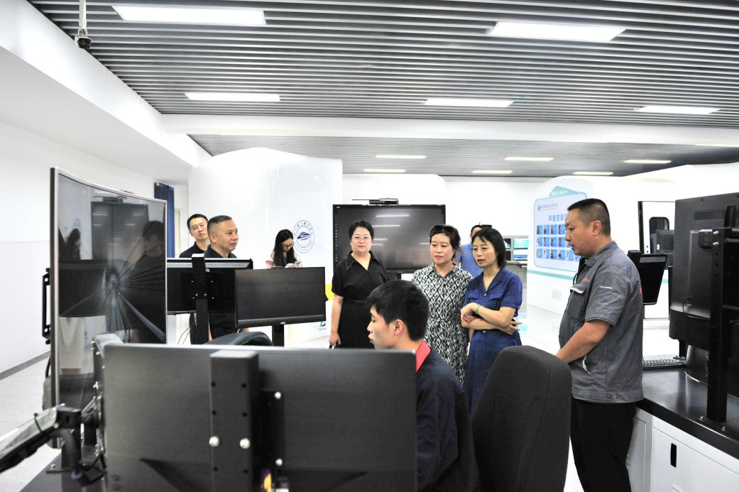 座谈会前,陈丹一行实地考察了学校铁道综合实训基地、城市轨道交通综合实训中心、动车组机械师实训室和复兴号模拟驾驶实训室,现场察看了在校培训的集团员工学习情况。
