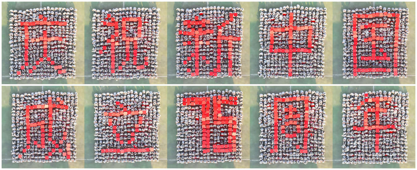 在汇报表演中,擒敌拳、匕首操、棍术、旗语和三防应急救护等依次亮相,同学们气势如虹、身姿矫健,拳出如锤、掌劈似刃,在一招一式中充分展现了当代青年学生的少年意气和砥砺奋发的青春热血,尤其是在组字环节中摆出“庆祝新中国成立75周年”字样,为即将到来的国庆节献上了青春贺礼。