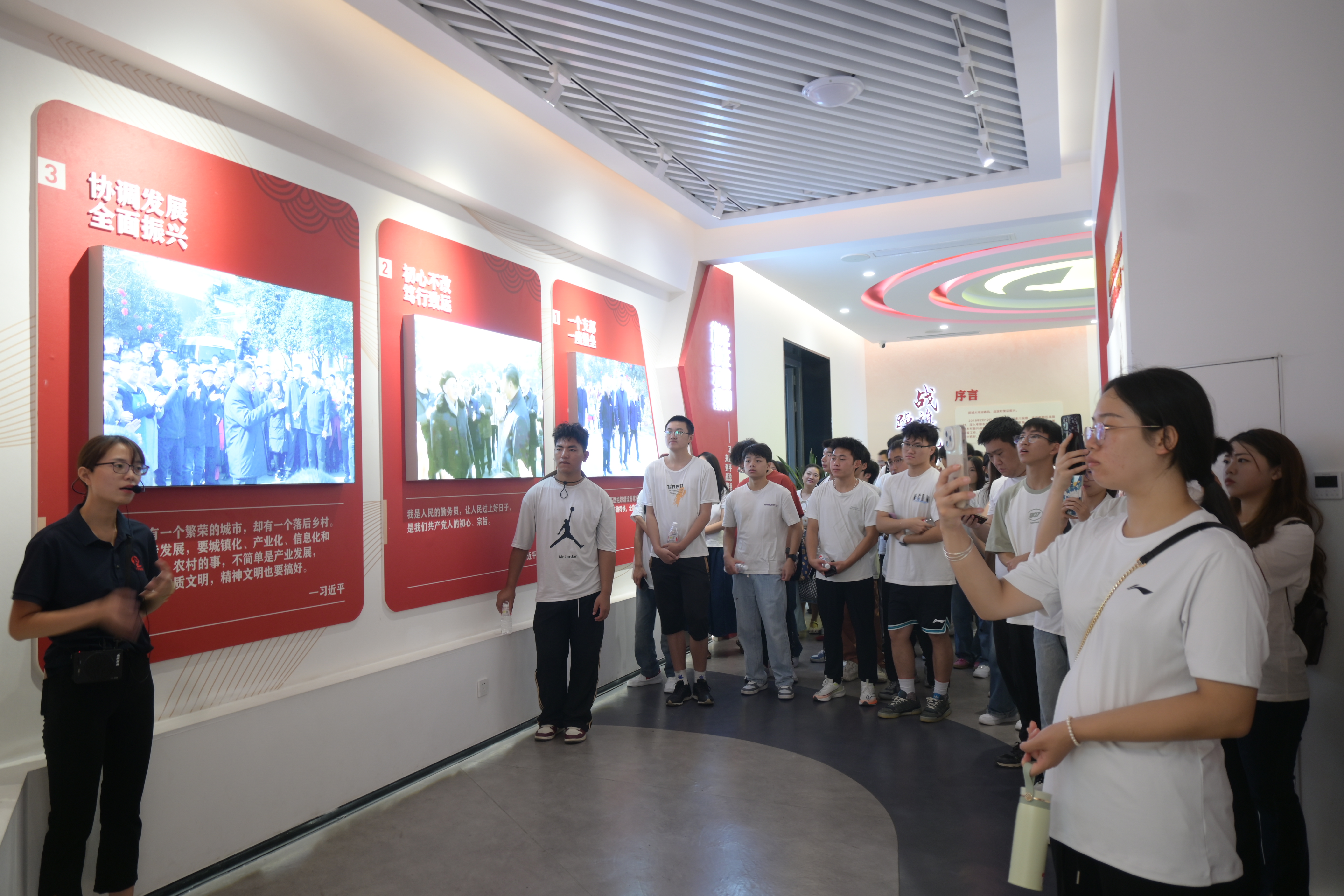 “谈”体会。分组调研结束后,各小组在带队教师指导下,结合“观”“听”“访”,进行了充分的组内交流总结,各组代表围绕小组调研任务、紧扣主题进行了精彩分享,同学们纷纷表示,战旗村犹如一面旗帜,引领着乡村振兴的全面推进。战旗村巨变只是中国千千万万乡村巨变的缩影,这一巨变得益于党的坚强领导,得益于人民对习近平总书记关于乡村振兴的重要论述的生动实践。供电23T2 涂杭军在感悟中说到:今天,我们走进战旗田野,见证了战旗乡土文化、农耕文化、旅游文化、思想政治文化等方面发生的历史巨变,这是党领导下乡村巨变的一个缩影。我们青年一代要主动走进田间地头,“俯下身子、沉下心来”,在乡村振兴伟业中施展抱负、建功立业。
