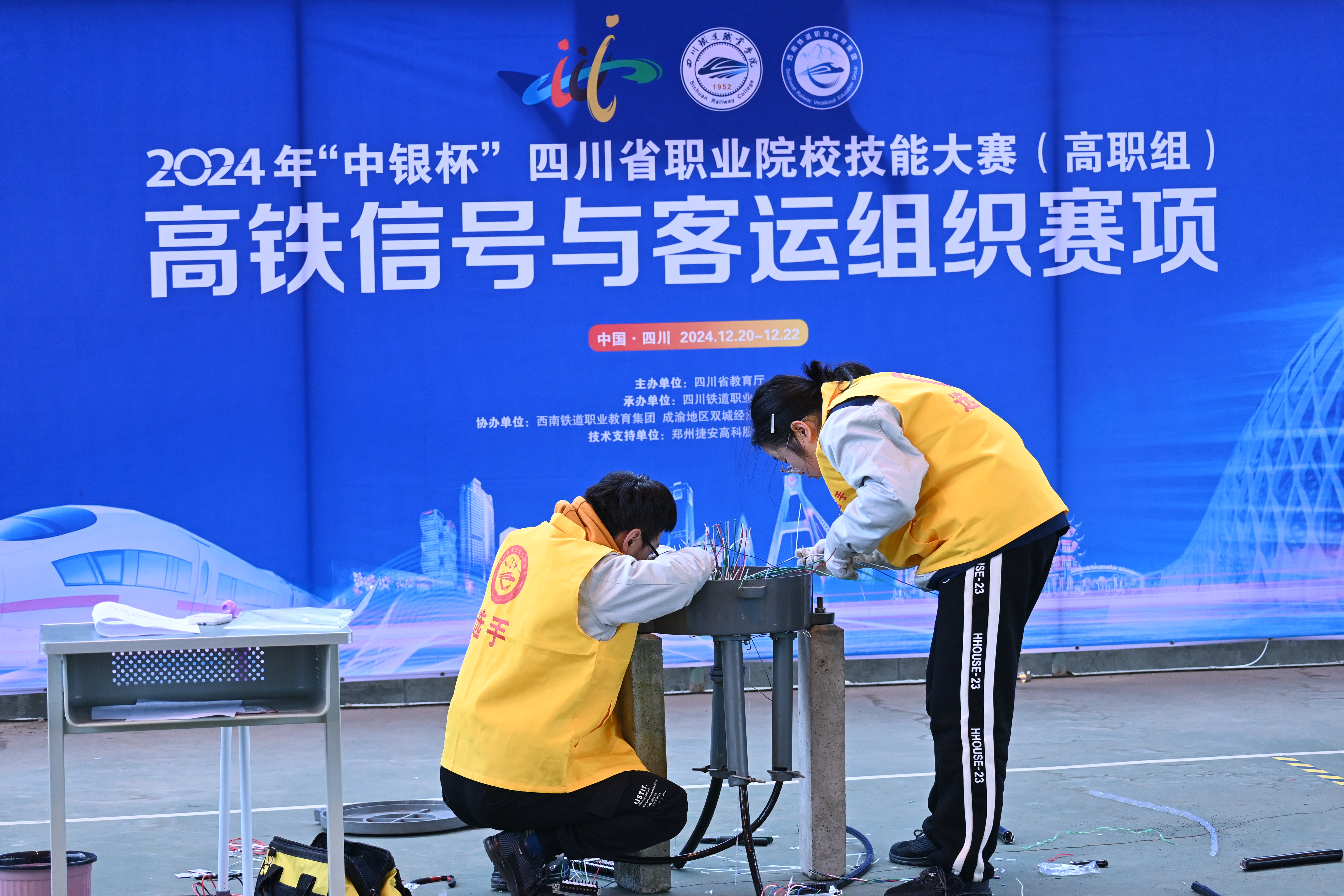 2024年12月21日至22日,2024年“中银杯”四川省职业院校技能大赛城轨智能运输、高铁信号与客运组织赛项(高职组)在beat365顺利举行,11所高职院校的42支代表队参赛。此次竞赛旨在弘扬劳模精神、劳动精神和工匠精神,为参赛院校和师生搭建分享、交流和展示的平台,进一步加快交通运输与装备制造领域高素质技能人才的培养与选拔。 城轨智能运输赛项以团体赛形式进行,每组4名选手并肩作战。竞赛项目分为模块A智慧城轨运营组织、模块B城轨信号设备维护两部分,全方位考核选手的列车运行、信号及机电设备监控、突发事件应急处置、信号故障分析与处理、信号设备安装与维护等职业综合能力,以及团队协作和沟通的能力。竞赛项目综合性强、难度高,紧密贴合真实岗位工作场景,顺应我国轨道交通产业升级对人才的新需求。
