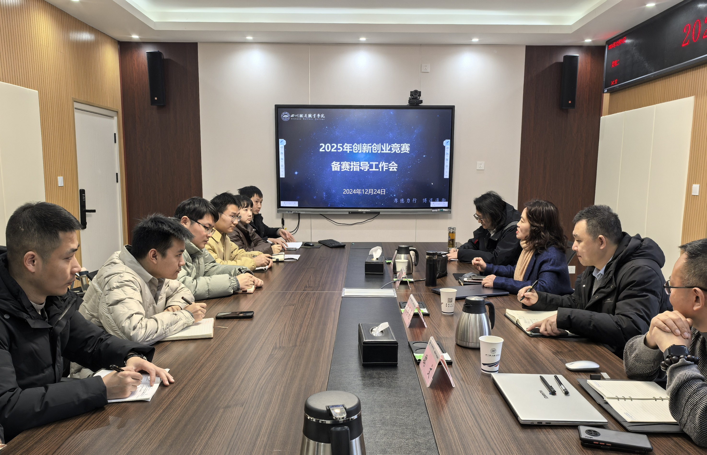 12月24日下午,学校2025年创新创业竞赛备赛指导工作会在办公楼二会议室召开。四川哥莎威克科技有限公司董事长、四川知链未来科技有限公司董事长、创新创业引导研究院(四川分院)院长、四川省创新创业促进会创新创业专家魏文,成都英黎科技有限公司副总经理、高级经济师、中国通信企业协会质量评审专家组成员江浩应邀到校指导。校长赖芳,副校长代学灵,党委学生工作部部长、团委书记王文杰及项目指导教师代表、各二级学院团总支书记、团委相关工作人员参加会议。