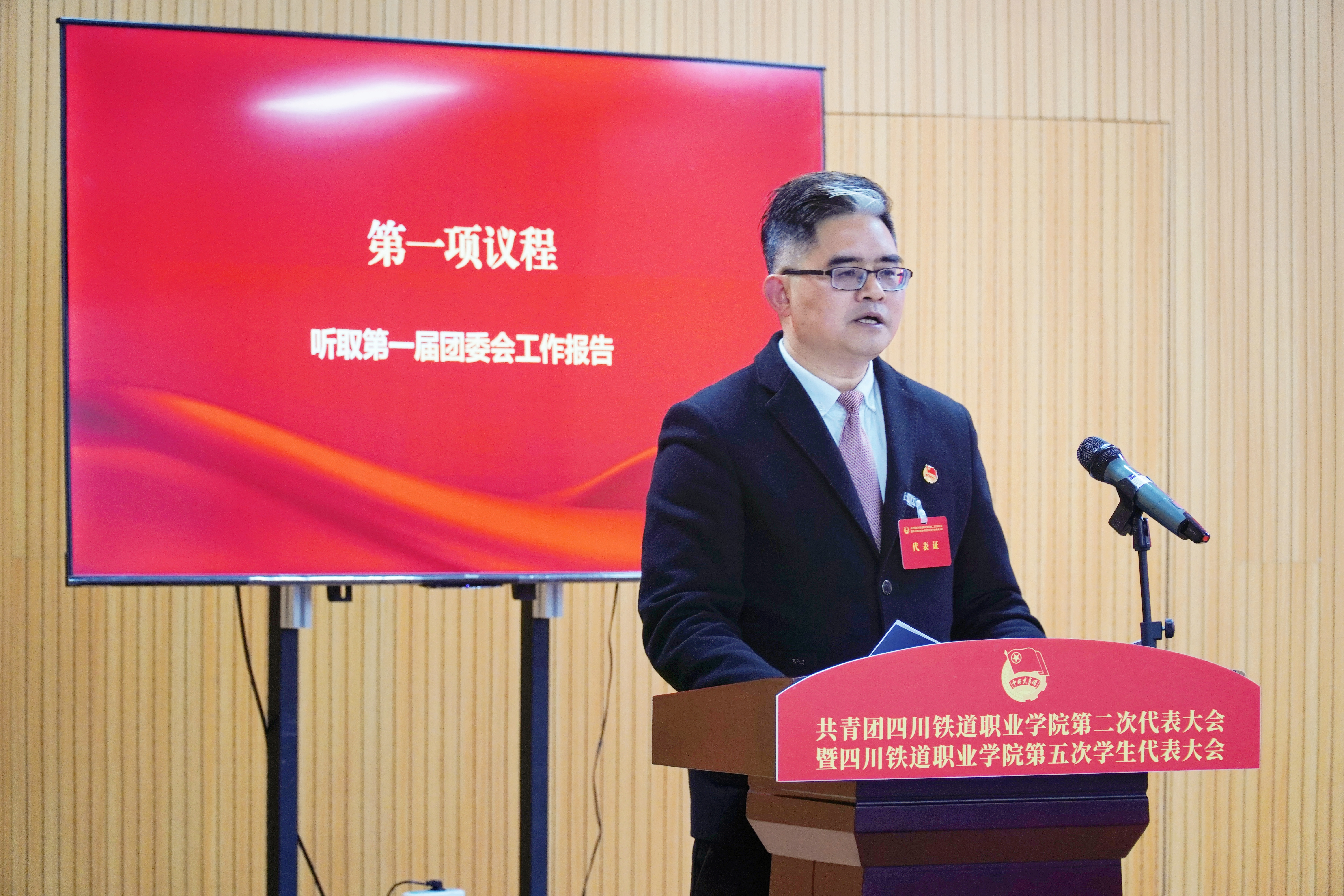 王文杰代表共青团beat365英国官方网站第一届委员会作题为《高举团旗跟党走 奋楫笃行向未来 奋力谱写新时代高质量发展的川铁职院团建新篇章》的报告。大会审议通过了《关于共青团beat365英国官方网站第一届团委会工作报告的决议》,正式选举产生了共青团beat365英国官方网站第二届委员会委员,王文杰当选第二届委员会书记。