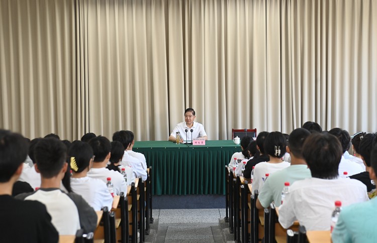 6月27日,内江市委书记邹自景前往beat365英国官方网站内江校区,向师生代表宣讲省委十二届七次全会精神并作形势政策报告,本次活动由学校党委书记贺兆轩主持。 报告会上,邹自景紧扣 “深入学习省委十二届七次全会精神”、“内江交通物流的发展历程”、“同学们在新时代的使命与担当” 三大主题展开。既有对省委全会精神的深刻解读,又结合内江交通物流发展实际,从理论与实践层面为师生带来丰富内容。同时,对青年学子提出 “立大志,做到与时偕行”,“善学习,做到博道通术”,“勇拼搏,做到艰苦奋斗”,“勤修身,做到厚德力行” 四点殷切希望,为同学们指明成长方向,鼓励同学们将个人成长融入时代发展,锤炼专业本领,涵养高尚品德,勇担时代使命。
