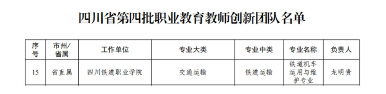 | 学校铁道机车运用与维护专业教师教学创新团队入选省级职业教育教师创新团队 |