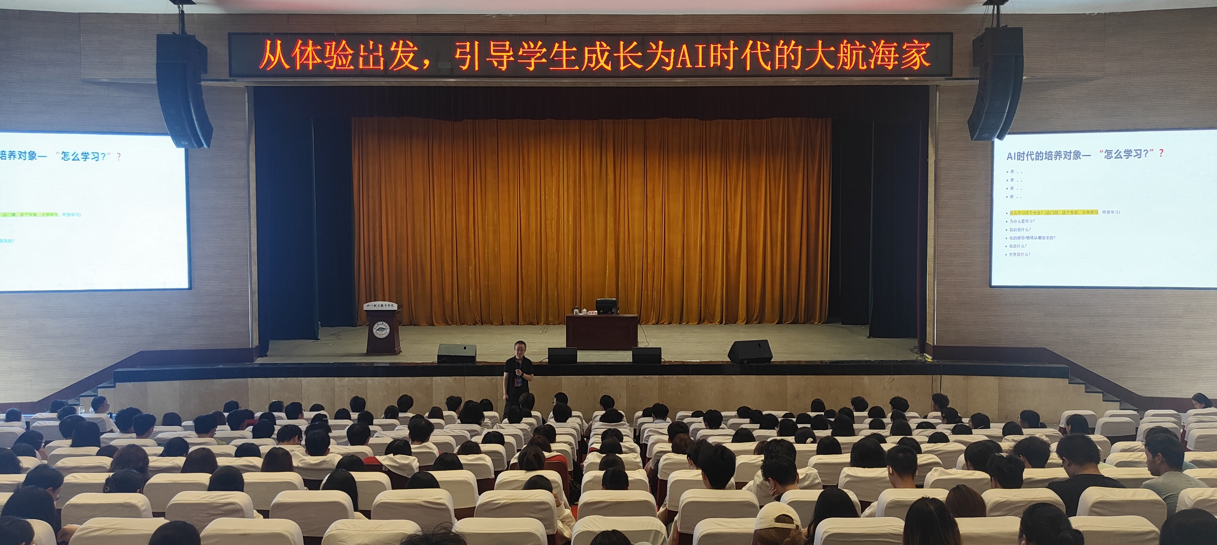 徐世中教授从当前大学生在AI时代面临的机遇与挑战出发,引导师生深入思考:在AI时代,我们应当学什么、怎样学?他结合丰富而生动的案例,抽丝剥茧,层层递进,引导大家重新审视“直觉”“感受”与“知识”“创新”之间的内在联系。进而,他进一步阐释了大语言模型在逻辑推演与语言表达方面具有强大优势,人类更应发挥自身在直觉、情感与体验方面的独特优势,推动“直觉性创新”的发展。 徐世中教授以哥伦布为例,鼓励师生在AI时代发扬“大航海家”精神,勇于探索未知、突破认知边界。他通过数字排列的案例说明,不同视角带来不同认知,创新并非按部就班地推导,而是一个不断试错、持续突破的过程。他强调,在AI时代,大学生应“从体验出发”,重视身体感知与情感本能,勇于探索、敢于试错,努力成长为AI时代的探索者与创造者。 整场讲座气氛热烈,徐世中教授以幽默的语言、鲜活的案例,激发了师生深入思考与共鸣。本次讲座拓展了师生对AI时代学习与创新的认知,也为学校推进教育教学改革、提升学生综合素养与创新能力提供了有益借鉴。