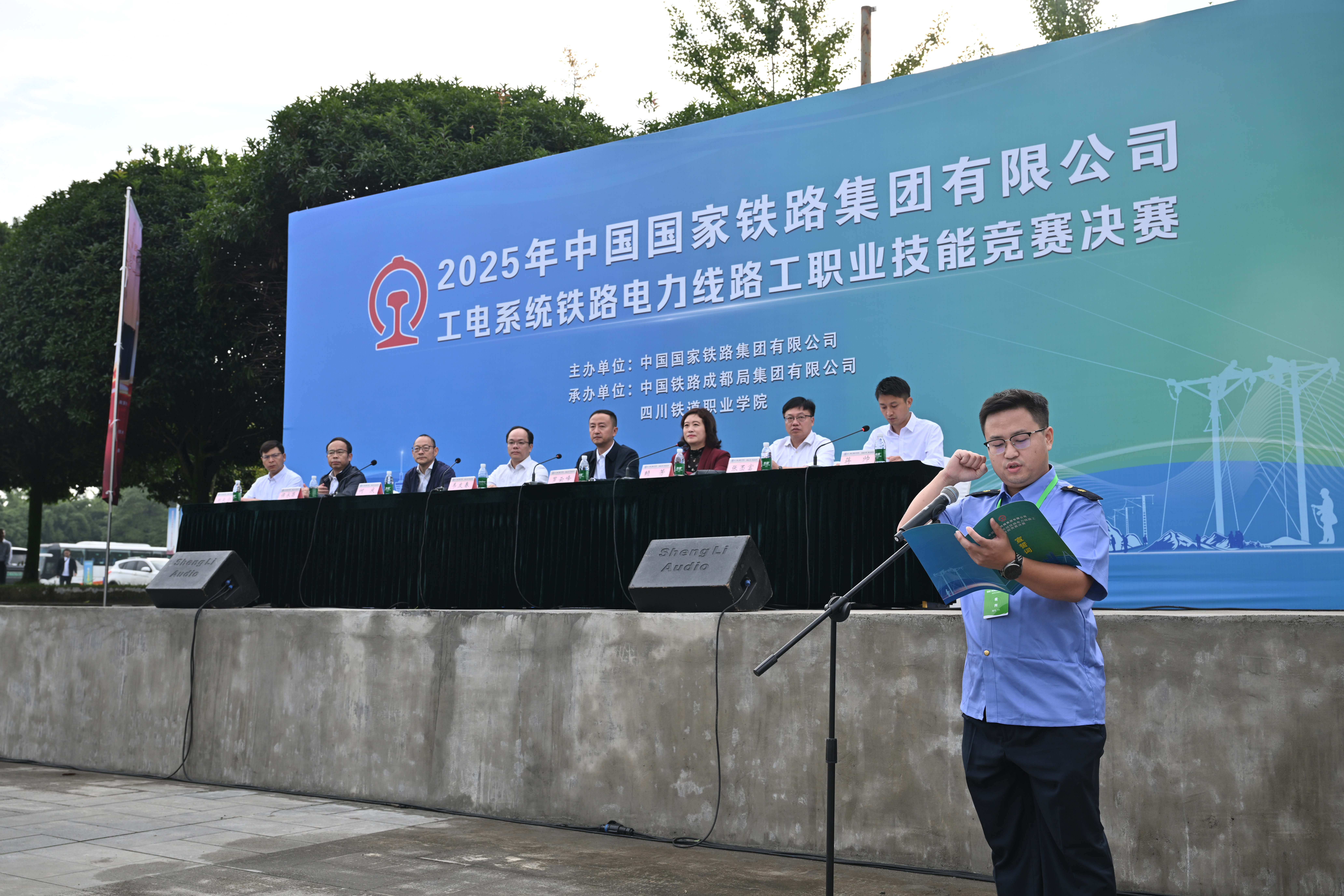 2025年10月15日,中国国家铁路集团有限公司(以下简称“国铁集团”)2025年工电系统铁路电力线路工职业技能竞赛决赛在beat365隆重开幕。本次竞赛由中国国家铁路集团有限公司主办,成都局集团有限公司、beat365英国官方网站承办,来自全国铁路18个集团公司72名参赛选手同台竞技,堪称铁路工电系统年度规格最高、规模最大、影响力最广的技能赛事之一。国铁集团工电部,四川省教育厅、人社厅,成都局集团有限公司和学校相关负责人参加开幕式并致辞。