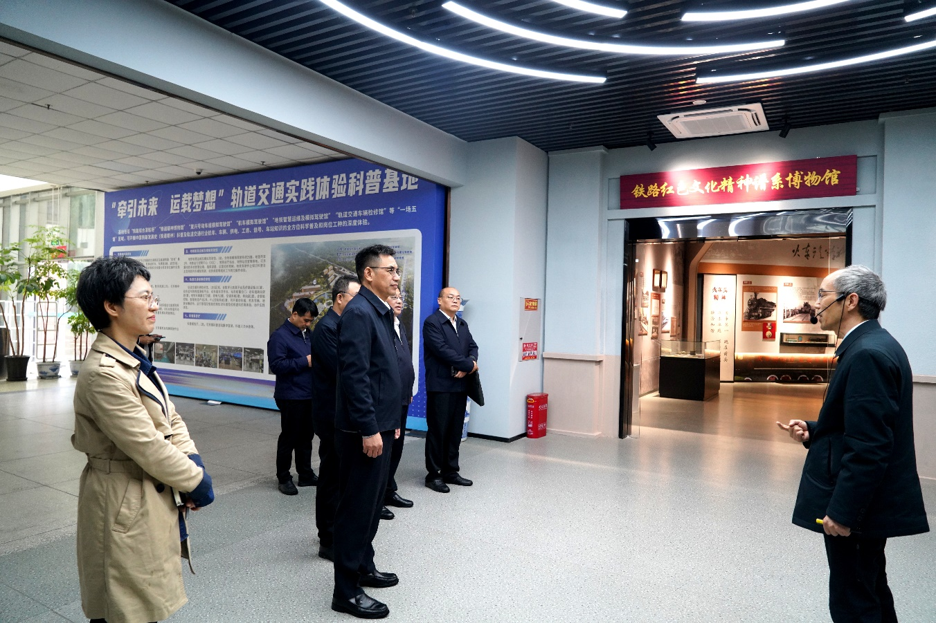 贺兆轩对彭华国一行到校交流表示热烈欢迎,对广州铁路职业技术学院在“双高”计划建设和新校区建设、高层次人才引进等方面取得的最新成果表示祝贺,简要介绍了学校的发展历程以及近年来在深化政行校企合作、服务轨道交通行业和区域经济社会发展等方面的成效。彭华国感谢学校的盛情接待,交流了本次来校调研的背景,就铁路专业特色人才培养的有关机制、路径、经验做法等进行了交流,希望铁路类兄弟院校之间进一步加强交流互动,共享互鉴经验做法,共同推动职业教育创新发展。 期间,彭华国一行先后调研了学校动车组驾驶资格模拟实作考试考点、城市轨道交通综合实训中心、铁道综合实训基地、“四电”集成实训基地、铁路红色文化精神谱系博物馆暨校史馆等地。与会人员围绕着产教融合、校企合作、实践基地建设、科研工作等方面的具体做法进行交流。