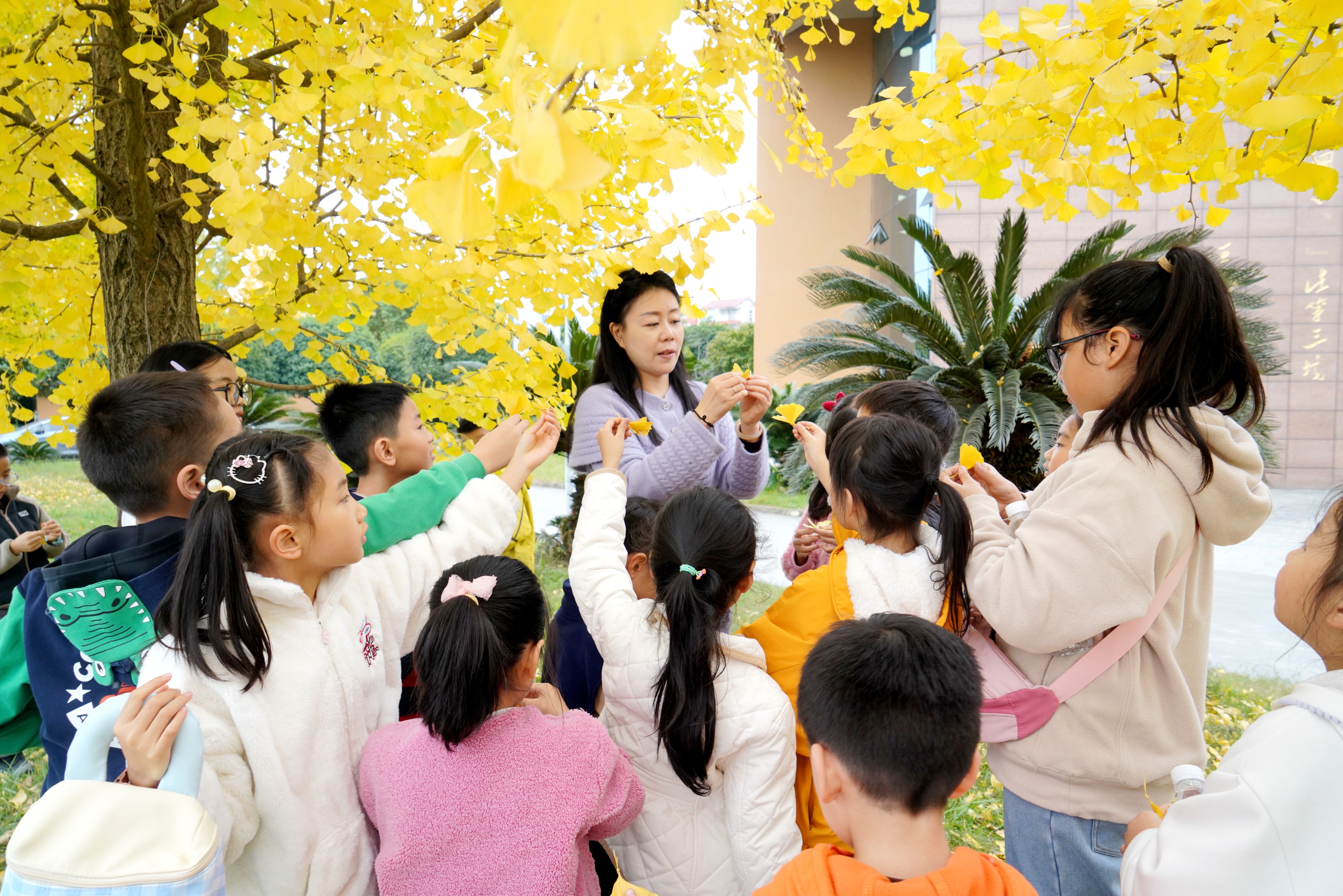研学不止于课堂。金秋时节,银杏纷飞,孩子们漫步校园林间,拾捡形态各异的落叶,巧手制作“纸蝴蝶”,让自然之美与创意灵感交融绽放。这不仅是一场美的发现之旅,更是一堂生动的生态文明教育课。